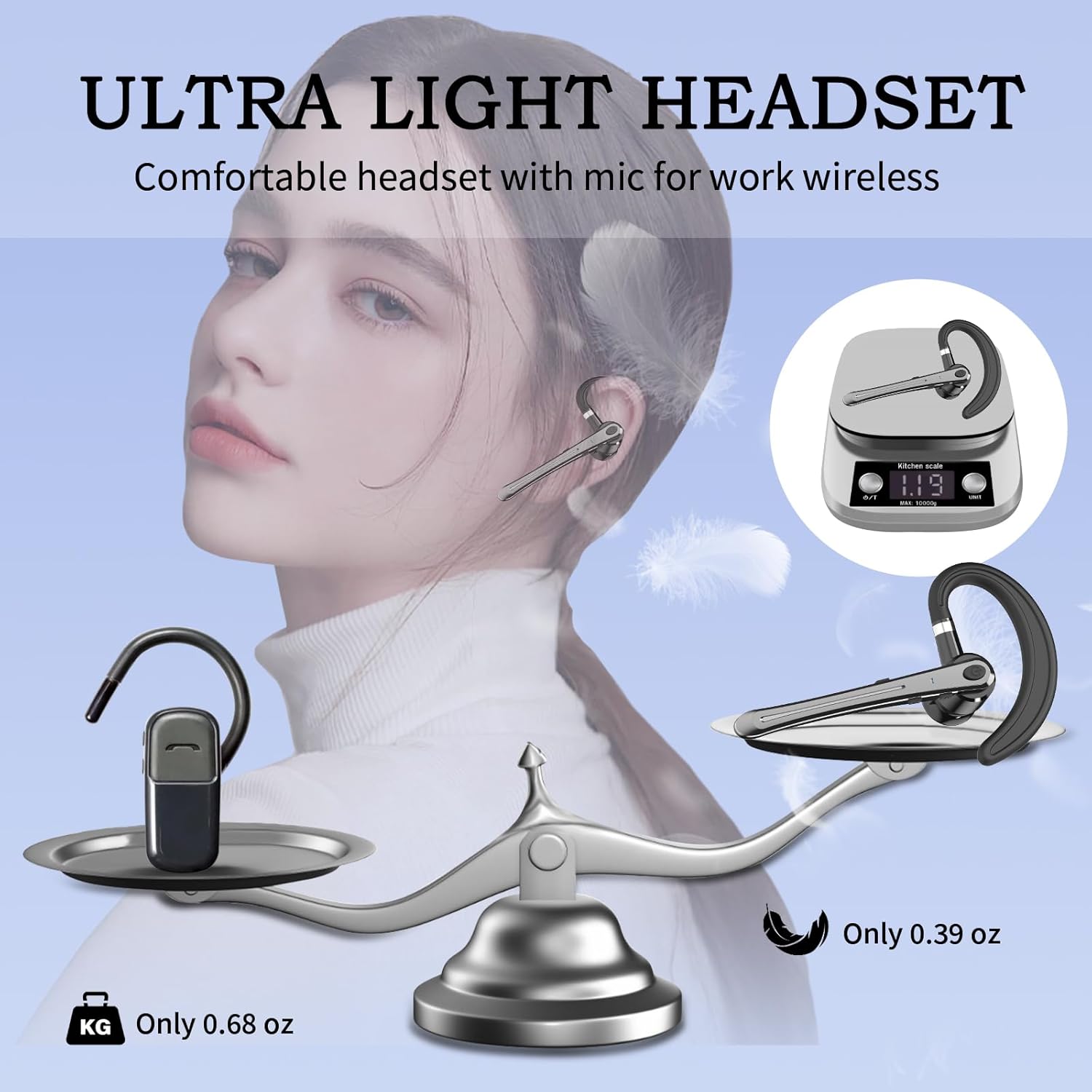 - 【 Ergonomic Comfort & Secure Fit】This wireless headset with mic Designed for all-day wear comfort. Features a straw modeling design, freely rotatable ear caps, and fits comfortably in both left and right ears for a personalized and secure fit.