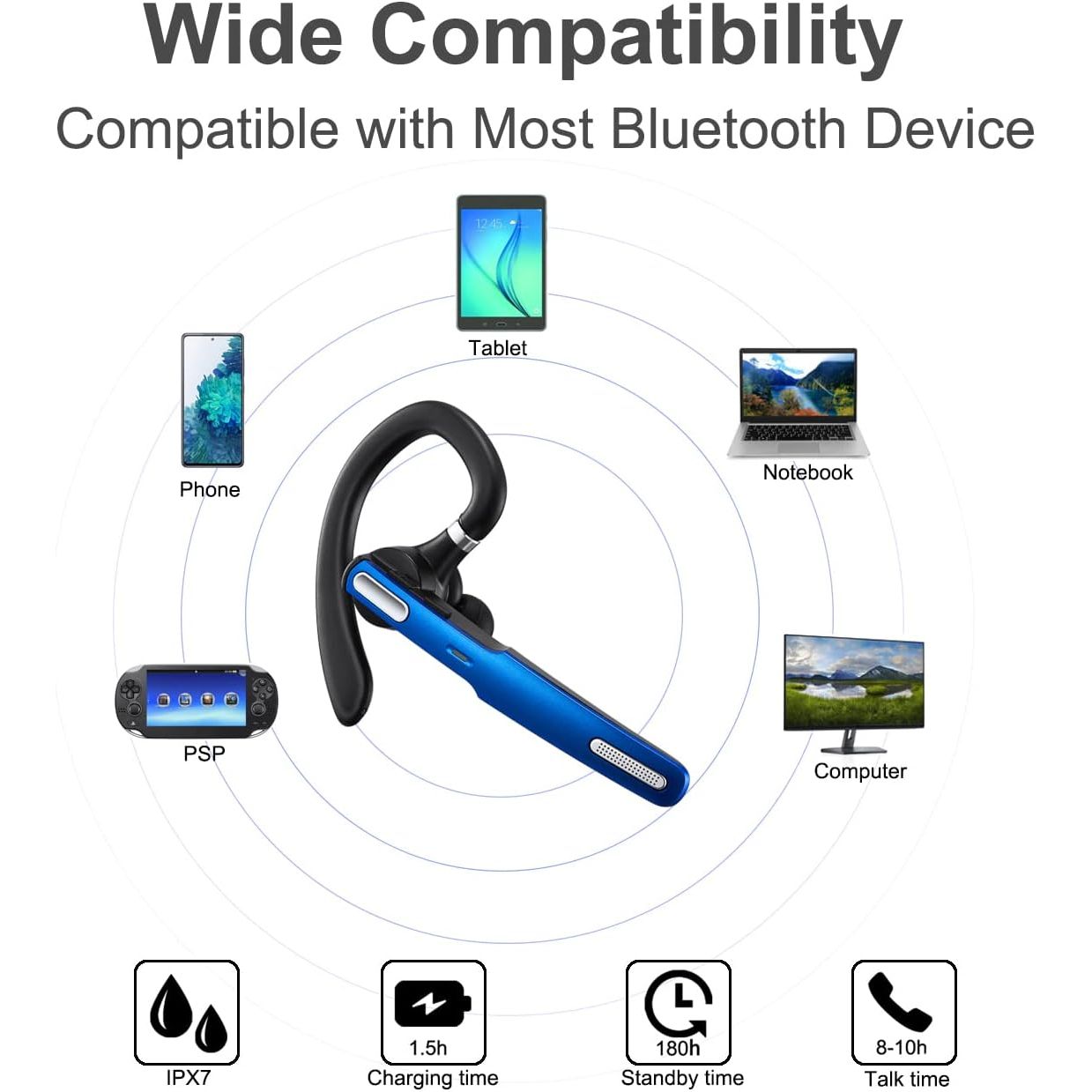 - COMEXION Bluetooth Headset, Wireless Bluetooth Earpiece V5.0 Hands-Free Earphones with Stereo Noise Canceling Mic, Compatible iPhone Android Cell Phones Driving/Business/Office