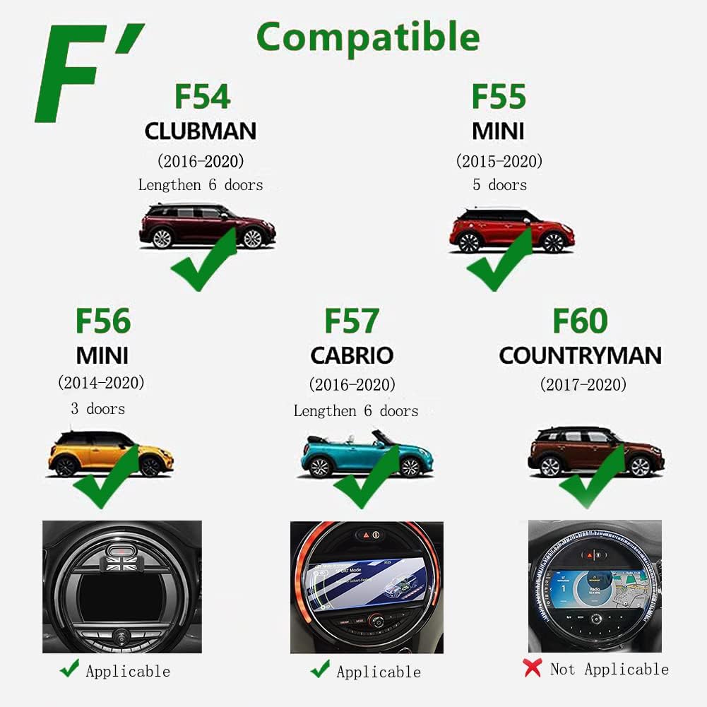 - Tailor-made for the MINI F-series, to be installed above the central control screen of the F-series.