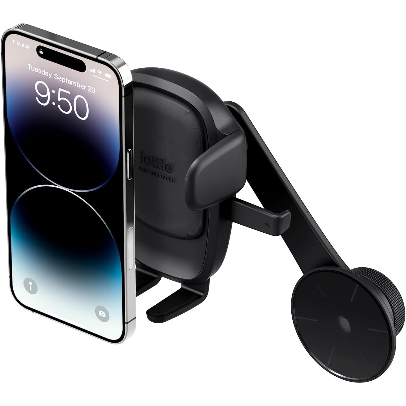 - EASY ONE TOUCH MECHANISM: Press the locking side arms with a quick one-handed motion, and place your phone against the trigger button. The mount’s arms will close automatically, holding your device securely while you drive. Mount or remove your phone in seconds with the patented Easy One Touch Mechanism.