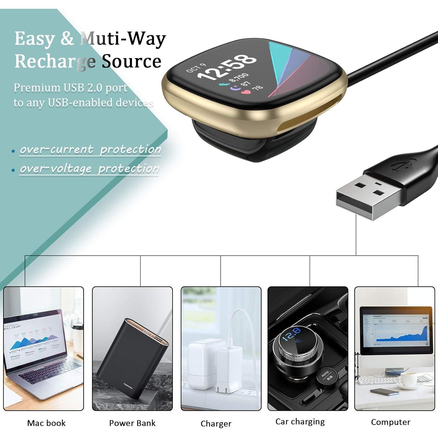 - Lightweight & Portable Sense 2/Versa 4 Chargers, suitable for work, home, travels. Put it in your bag and keep your watch always on. Reliable & Friendly Service for any quality issues; Only Replacement Charger for Sense/Sense 2/Versa 4/Versa 3(Watch or band NOT included)