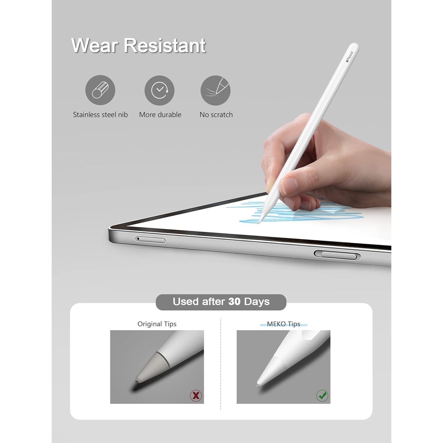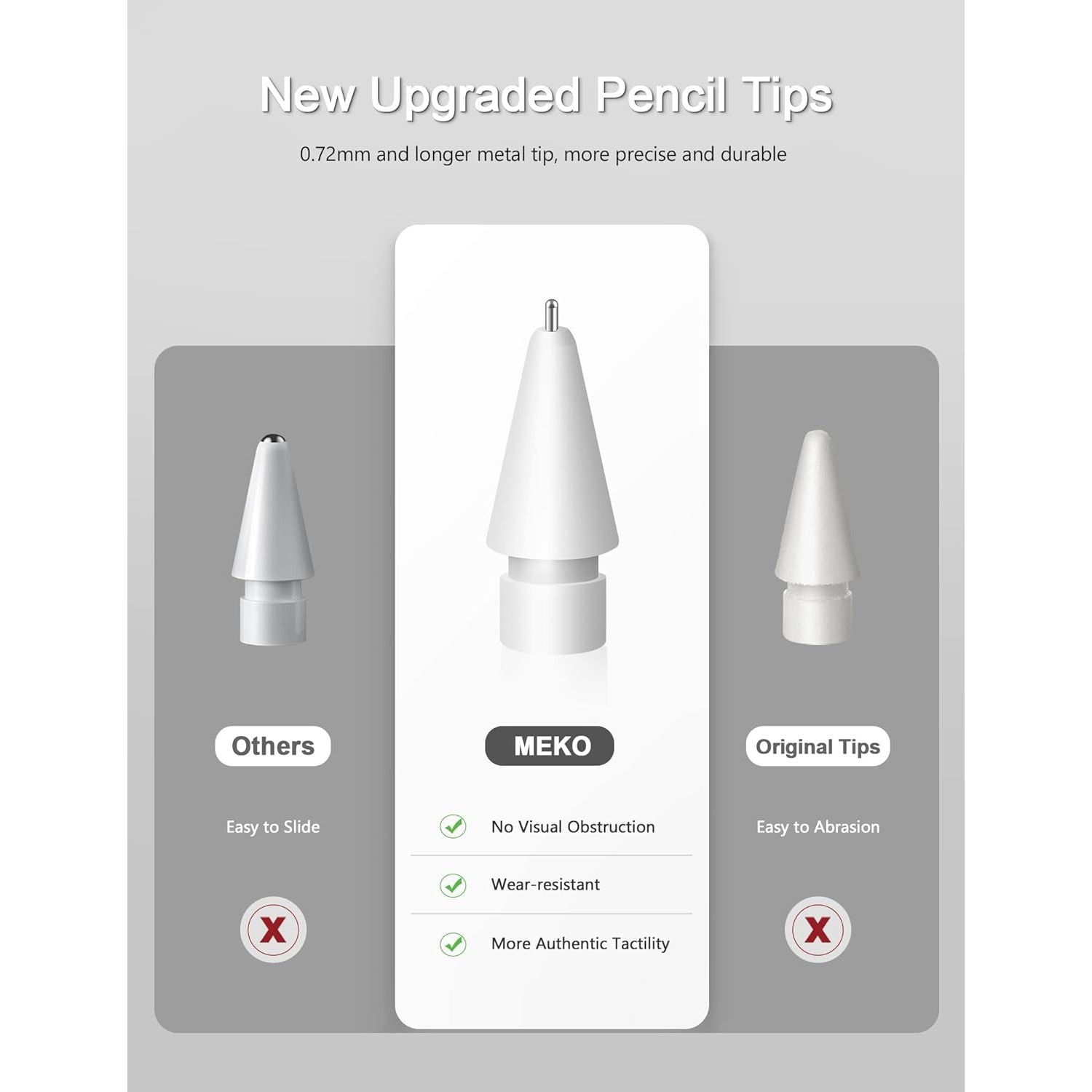 - MEKO 4 Pack Upgraded 0.72mm Fine Ponit Precise Replacement Tips for Apple Pencil 1st/2nd Generation & Logitech Crayon, Wear-Resisting Pen Nibs for iPad Pro/Air/Mini Pencil - White