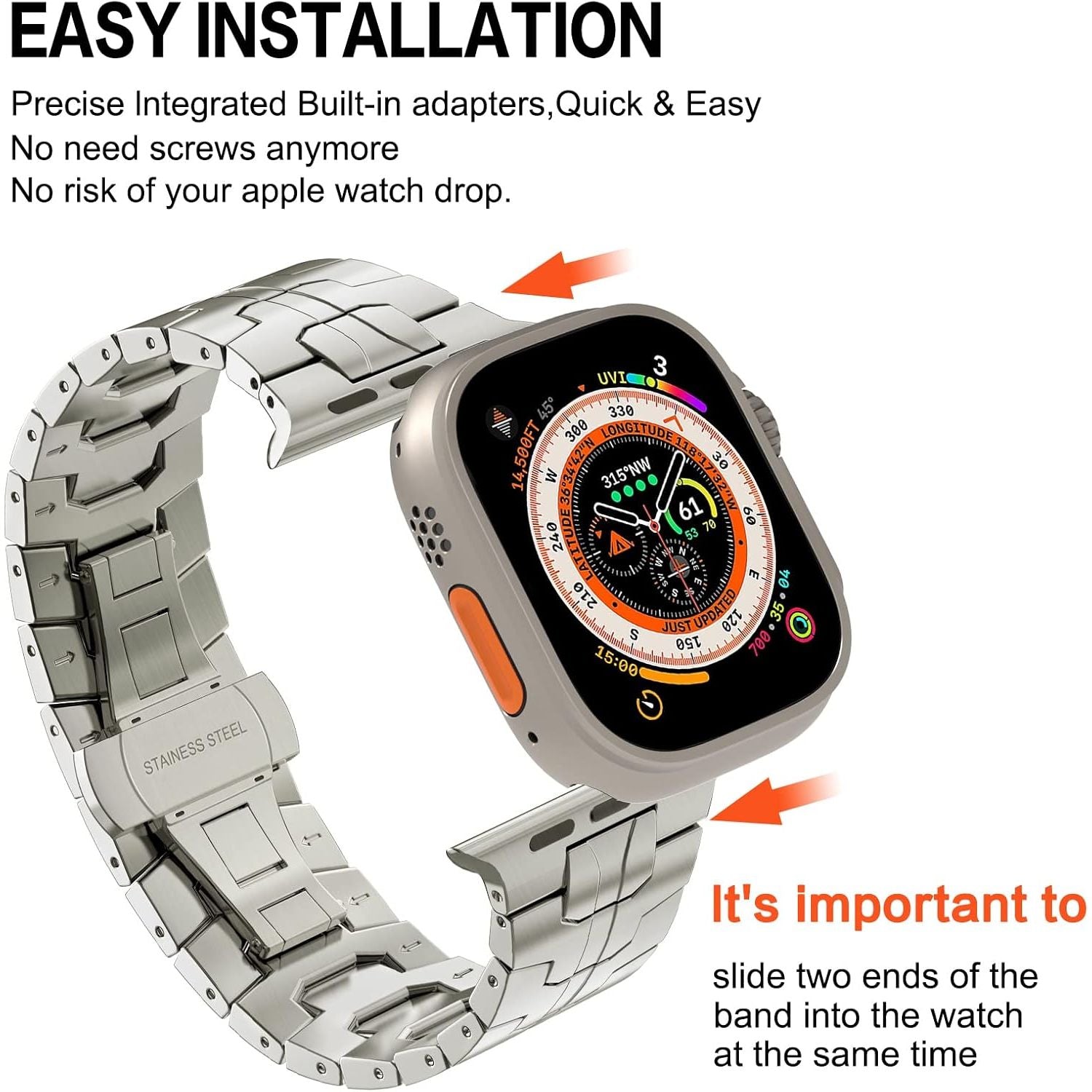 - 【What You Get】1*Compatible apple watch 49mm 46mm 45mm 44mm 42mm band,1*Compatible apple watch Ultra 49mm Case,1*Installation instructions, 1*Link-remove Tool,2*Link Pins