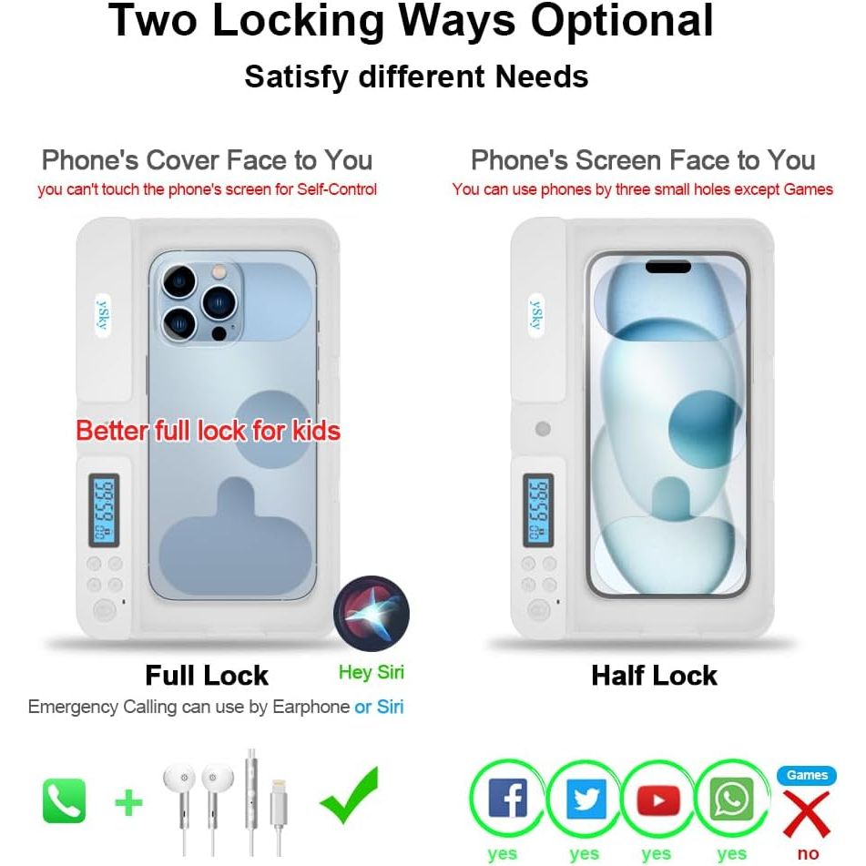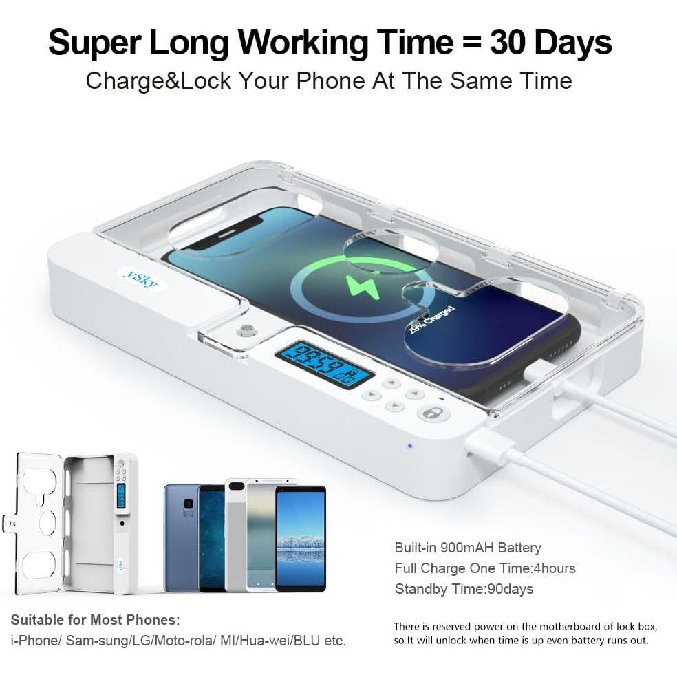 - ySky Portable Phone Lock Box with Timer for iPhone and Android Phones, Self-Control Timed Phone Jail Locker to Help Kids,Students, Adults Focus Back, Unplug from Phones Boost Your Mental Wellness
