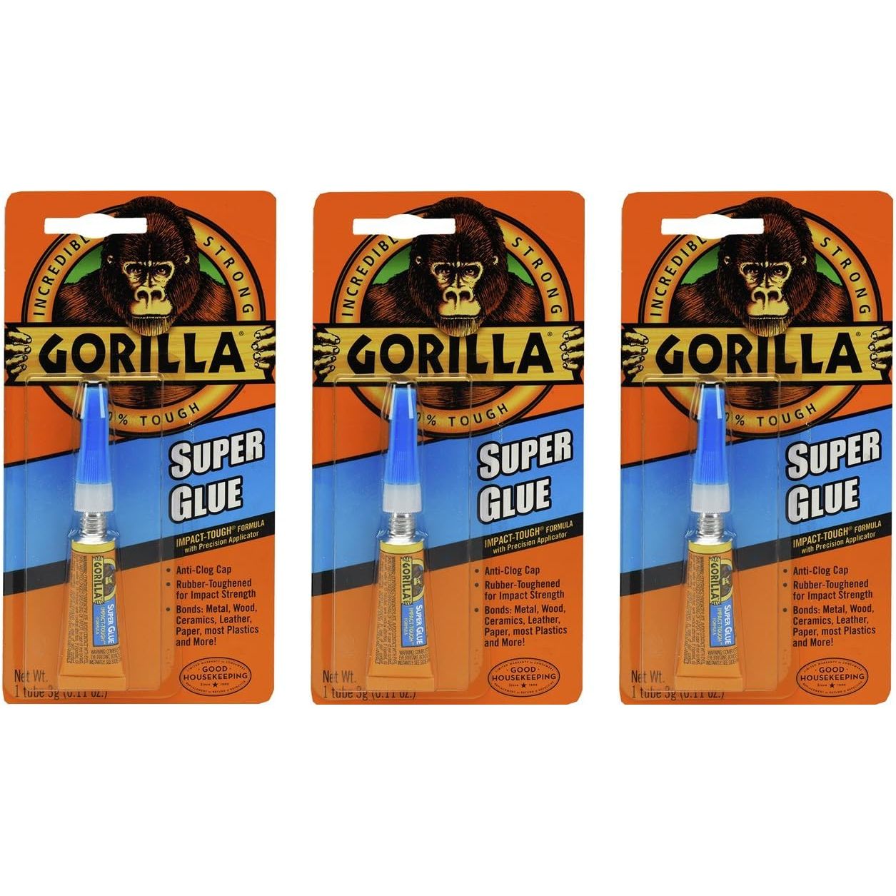- Gorilla Super Glue Tube, 3 Gram, Clear, (Pack of 1)