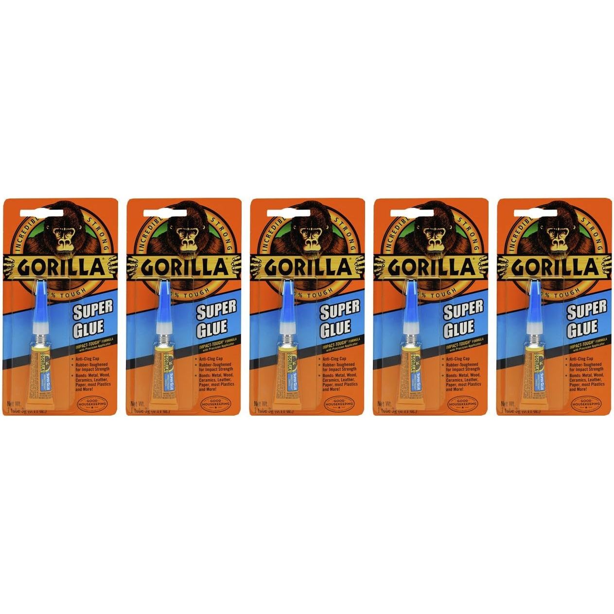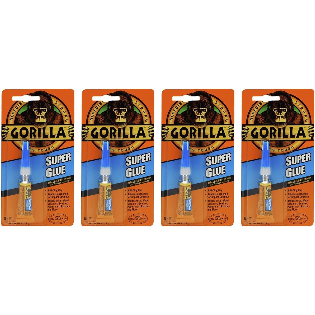Its high strength and quick set time make Gorilla Super Glue the go-to adhesive for a variety of household projects. Developed for long-lasting repairs in an instant, the clear glue dries in 10-45 seconds. Our Super Glue is reinforced with rubber for increased impact resistance to handle bumps and drops. We call it Impact-Tough because the reliable bond stands up to wear and tear unlike any other instant glue. Super glue, also referred to as cyanoacrylate glue, or CA glue, works on a variety of materials, including plastic, metal, fabric, stone, ceramic, paper, rubber and more. In addition to Gorilla Super Glue's high-performance cyanoacrylate formula, we've added an anti-clog cap with a metal pin inside ensuring an airtight seal for maximum reusability. It's Gorilla tough, every time. Gorilla Super Glue should not be used for intentional contact with the skin. Click on the Gorilla link at the top of this page to see other quality products from the Gorilla Glue Company.
