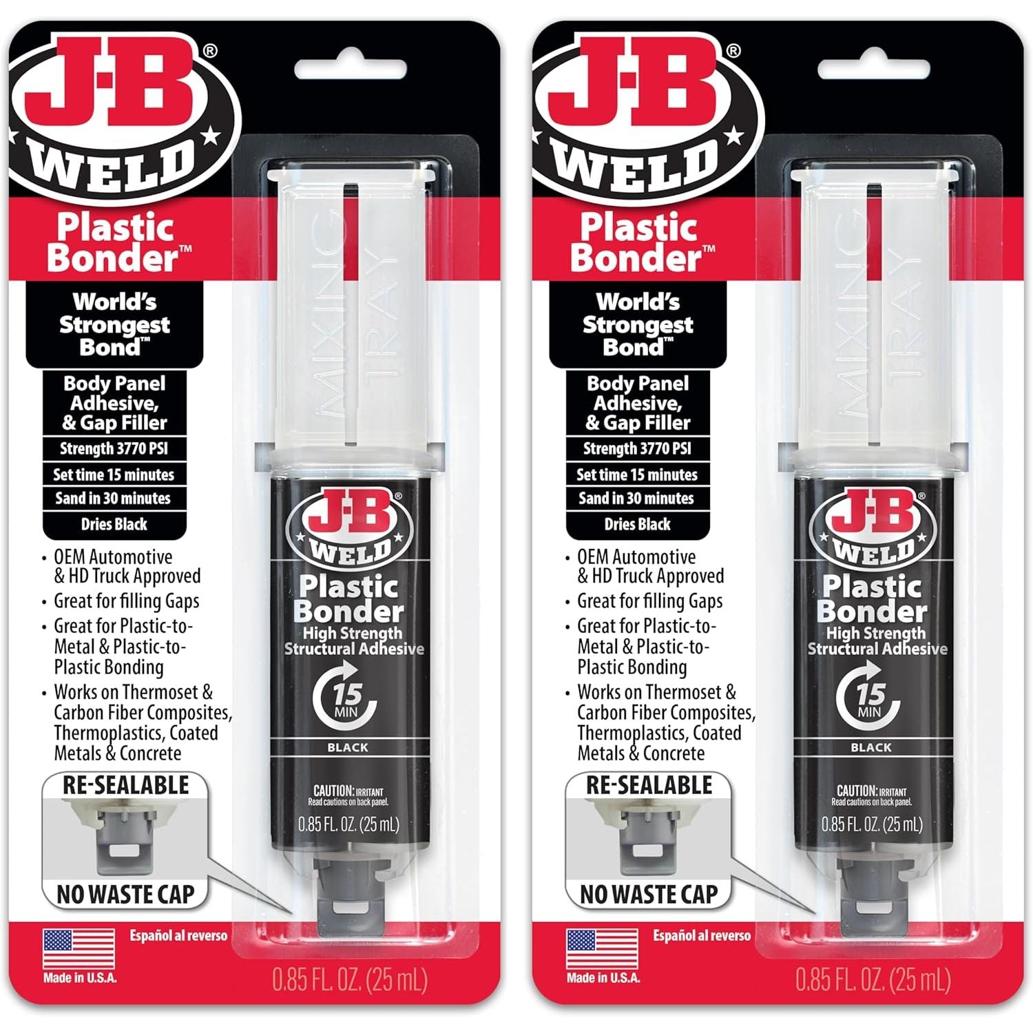 - Simple To Use: J-B Plasticbonder Has A 1:1 Mixing Ratio, Sets In 15 Minutes And Can Be Sanded After 30 Minutes. With A Tensile Strength Of 3770 Psi, Plasticbonder Cures To A Hard, Permanent Bond.