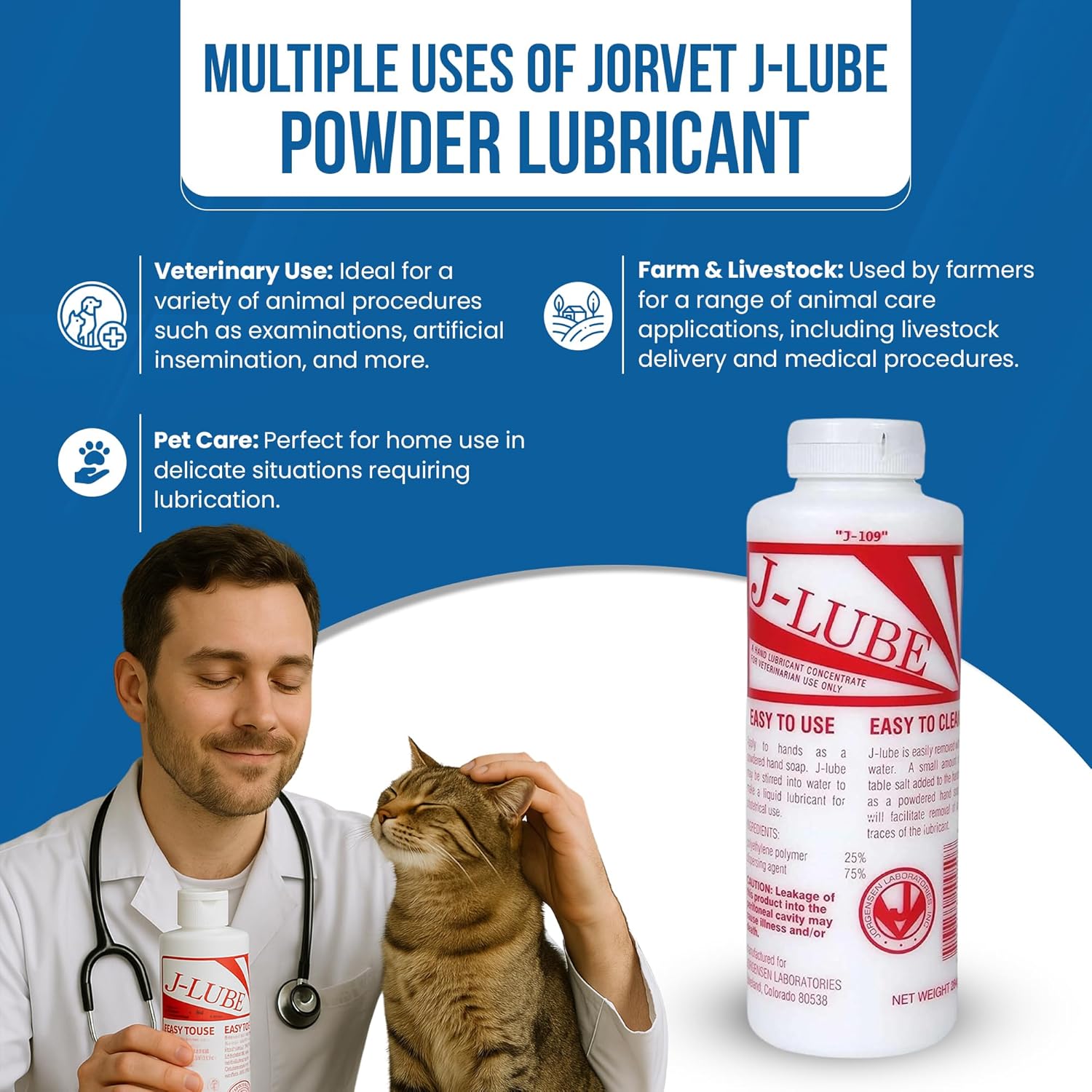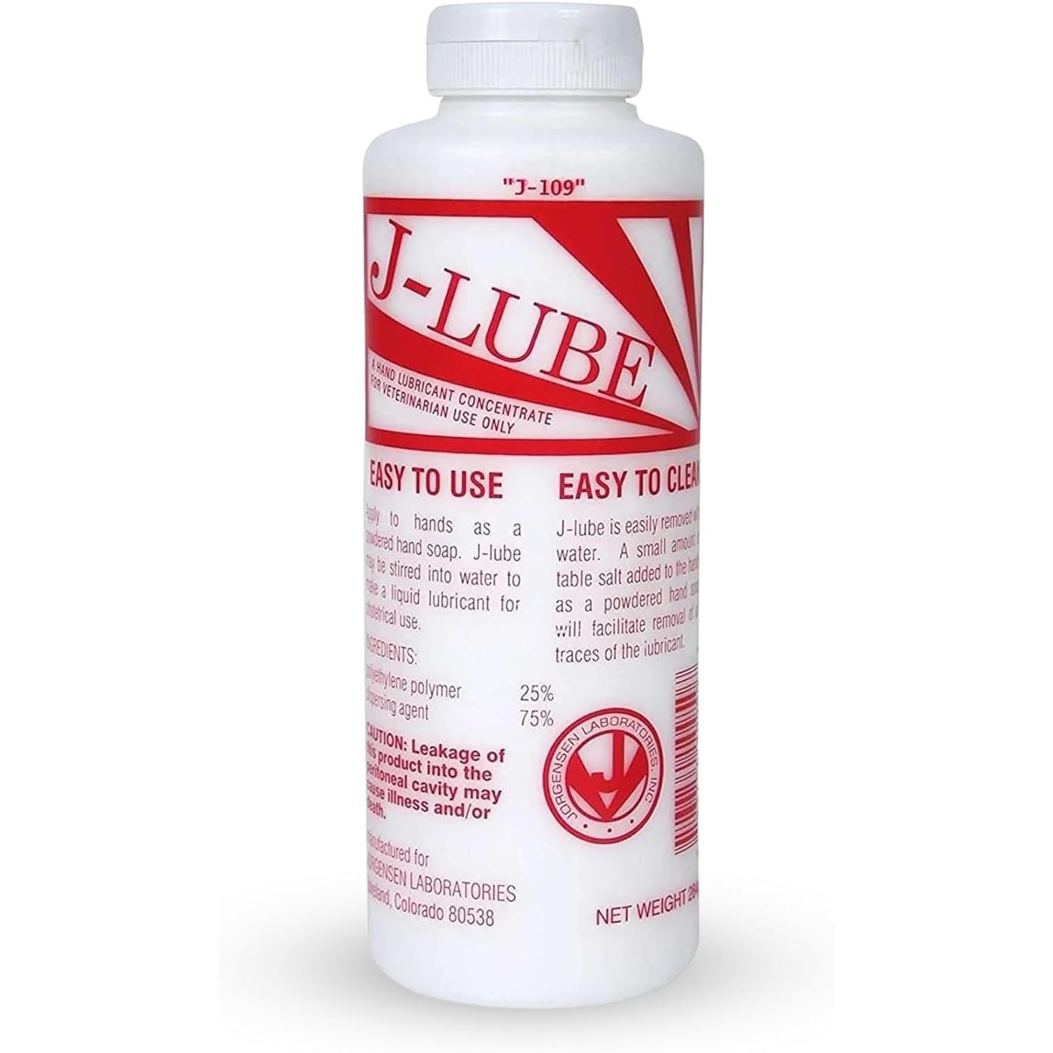 JorVet J-Lube Powder Lubricant | Easy-Mix Formula, Non-Irritating & Mess-Free | 10oz Bottle Makes 6-8 Gallons | Trusted for Veterinary & Obstetrical Use | Safe, Smooth & Easy to Clean | Red White