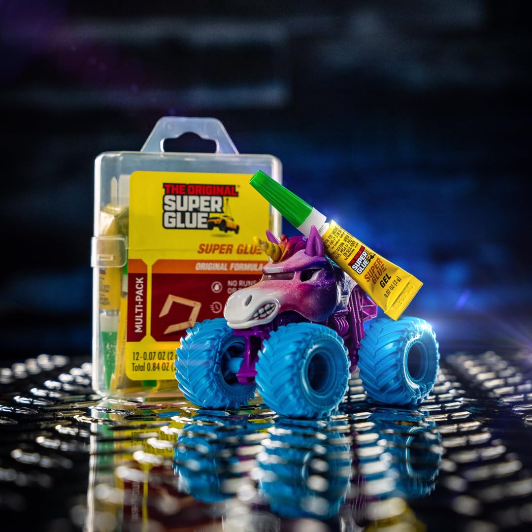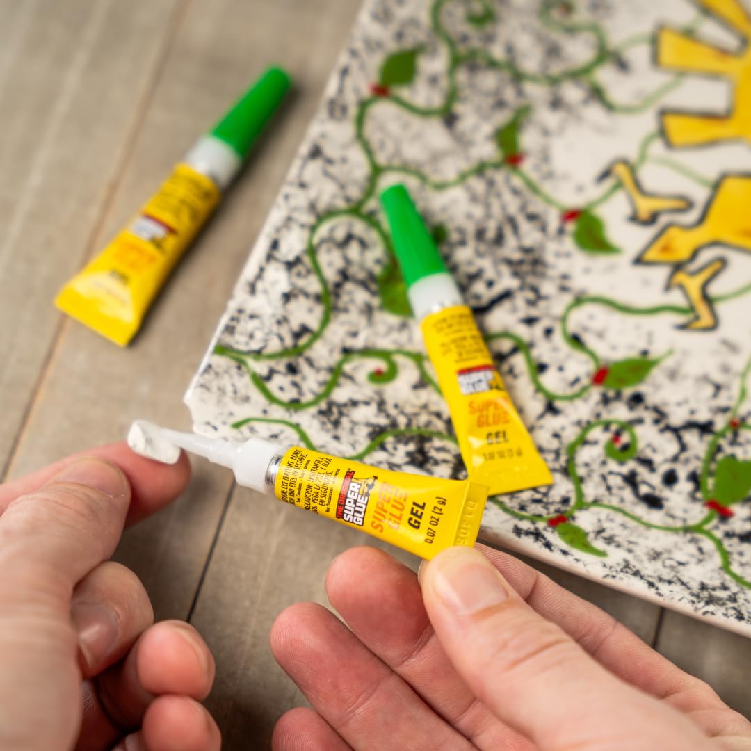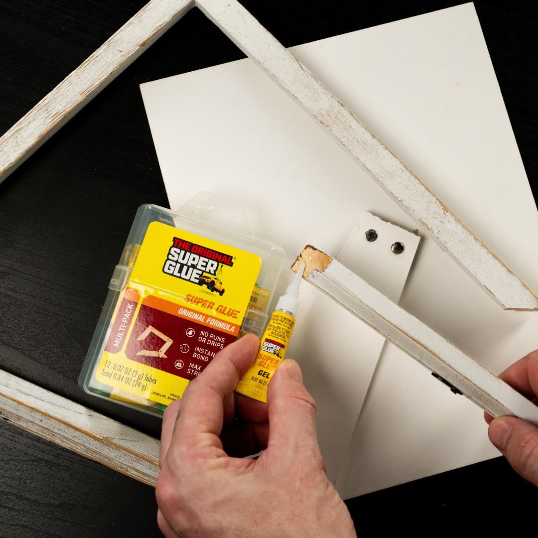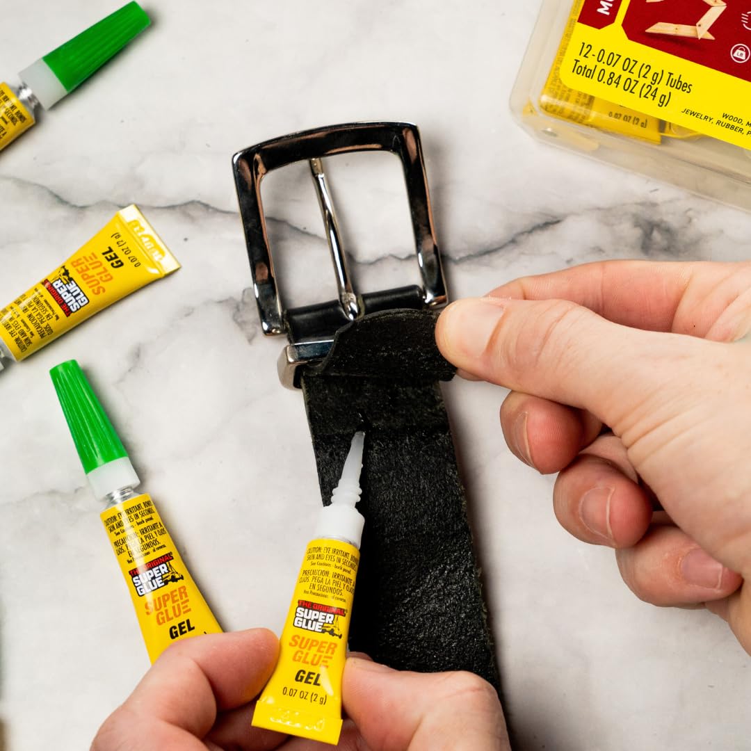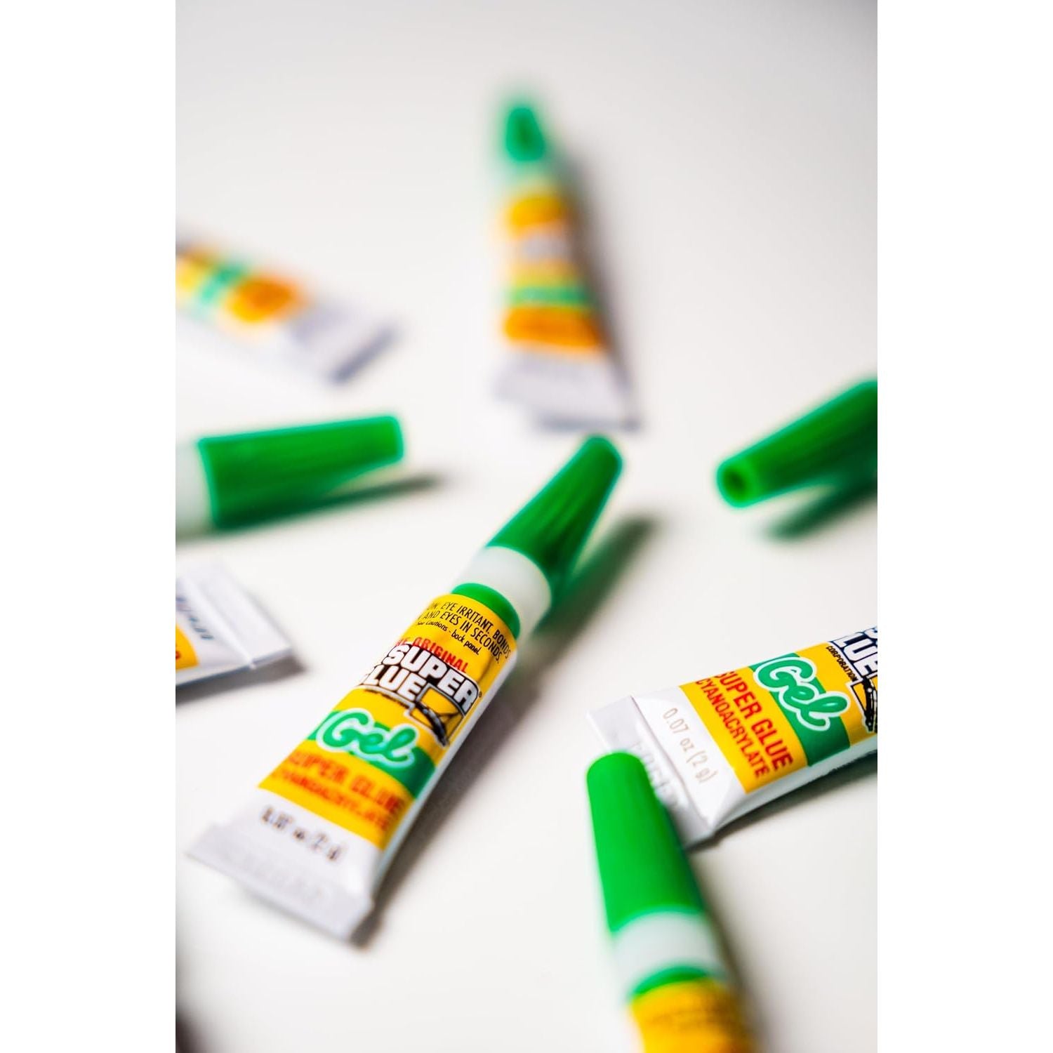 Product Description The Original Super Glue Gel 12-Pack is your ultimate solution for precise and strong bonding on vertical and porous surfaces. This gel formula super glue forms the strongest bonds on materials like wood, hard leather, porcelain, metal, and more. Each 2-gram tube in this 12-pack offers thick viscosity that prevents dripping and running, ensuring accurate application. The fast-drying formula bonds instantly and sets in just 10-30 seconds. Packaged in a handy reusable storage case, this super glue gel is perfect for a variety of repairs and DIY projects, providing long-lasting, reliable results every time. From the Manufacturer Super Glue gel's thick viscosity is perfect for clean, vertical, porous (wood, hard leather and porcelain) surfaces. Gels allow for a more accurate application as they do not drip or run. This handy, reusable container holds 12 long lasting 2-gram tubes.