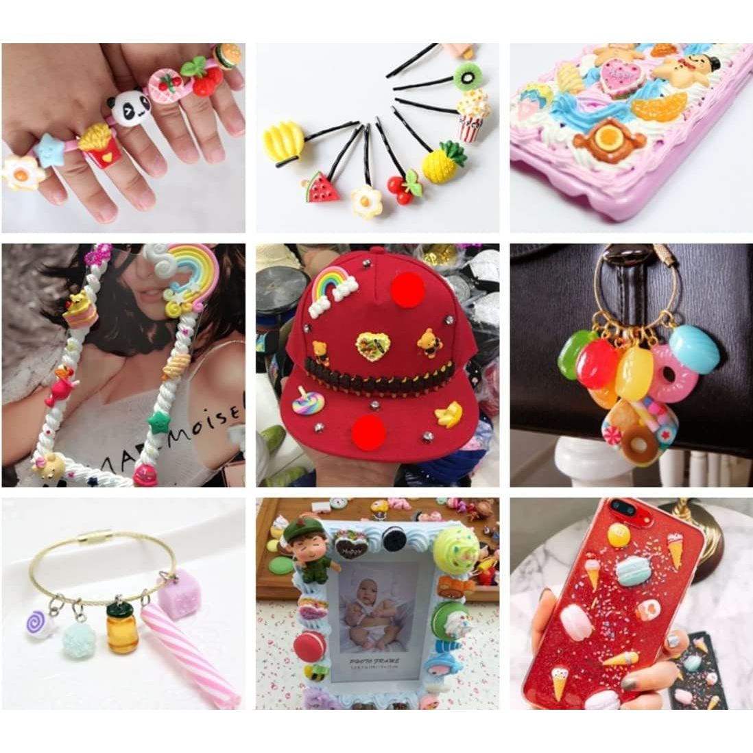 - Slime charm beads with various shapes,colors and great flat components for your craft projects, like hairpin, keychain etc.