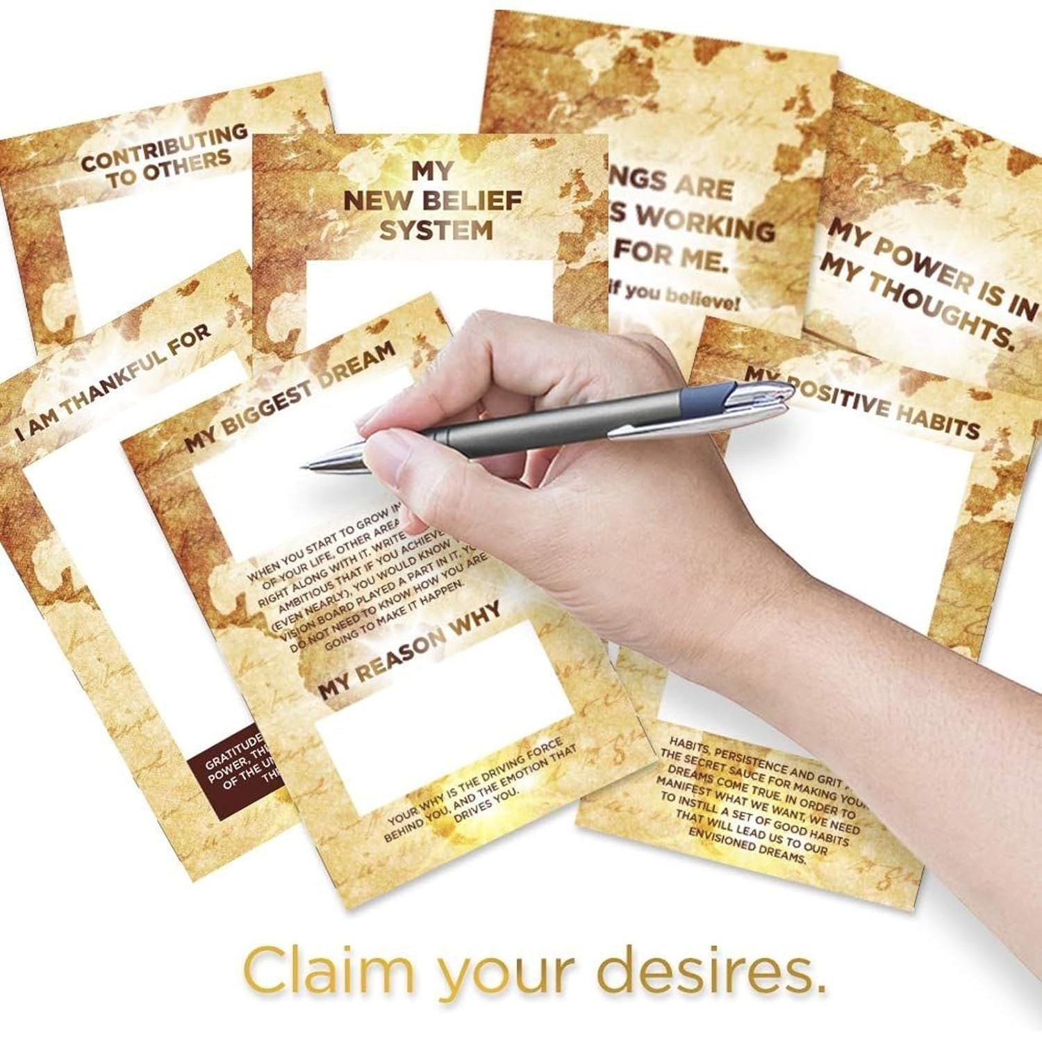 - Transformative Cards Collection: Engage with 15 expertly crafted Personal Transformation Cards, including vision board cards for adults and motivational journal cards. These thought-provoking elements serve as powerful tools for articulation and visualization
