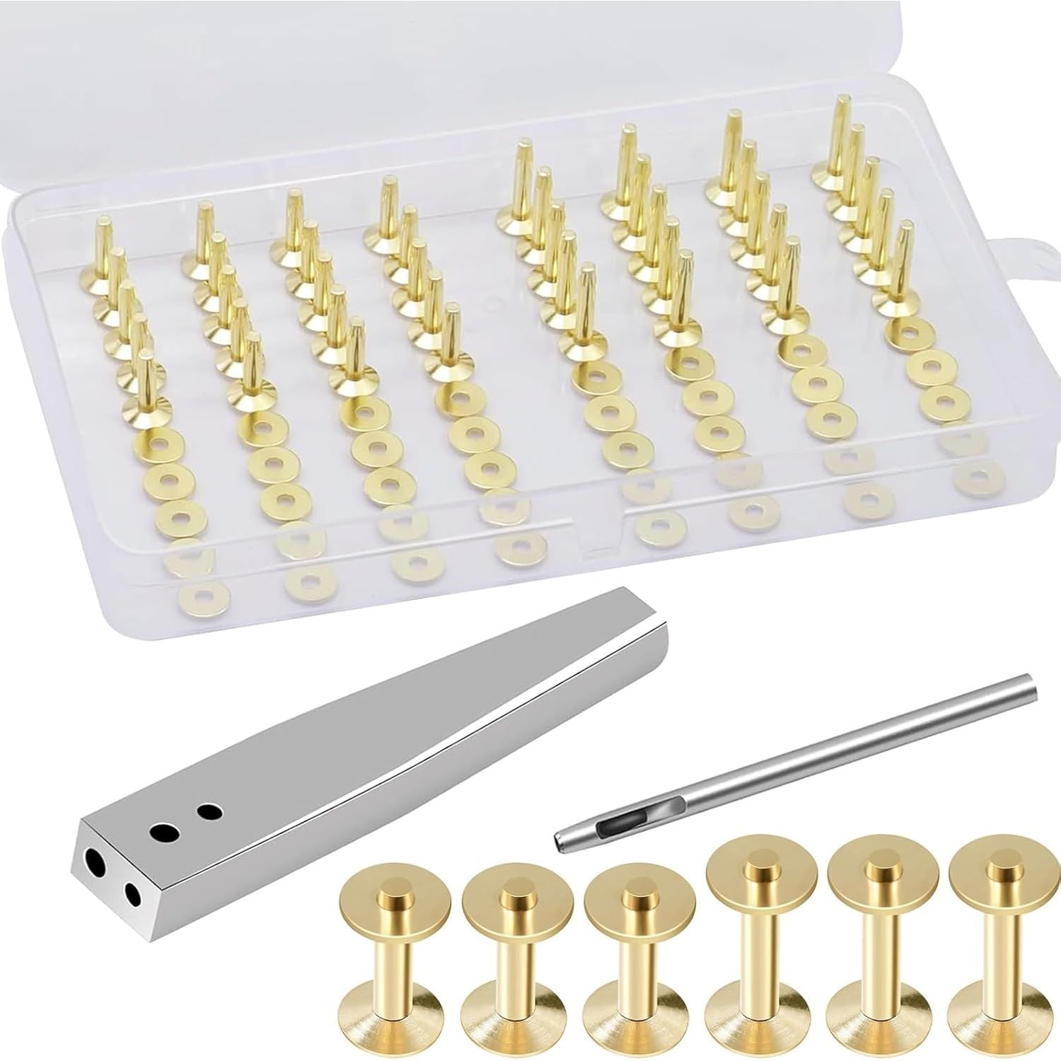Luxury matching, 40 sets of copper rivets, 1pc heavy duty 2 IN 1 stainless steel burr setter, 2pcs leather hole punch cutters. Large quantity, high cost performance.