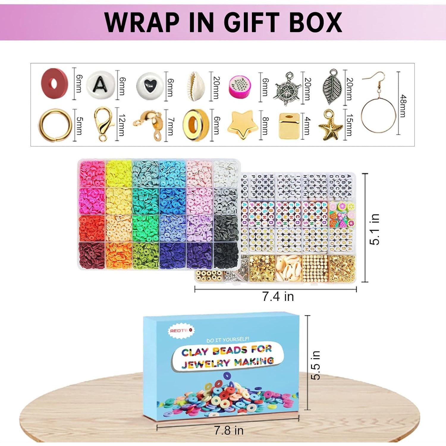 - HOW FUN THIS BRACELET MAKING KIT IS - You can give full play to your creativity. It contains everything you need to get started on making pretty earrings and bracelets. In addition, you can also make handicrafts such as rings, anklets, waist chains and mobile phone pendants. This clay bead kit is a popular gift for children (ages 4+) or adults who love to express their imagination. A meaningful and delightful gift choice for birthdays, Valentine's Day, Mother's Day, Christmas, Thanksgiving, etc