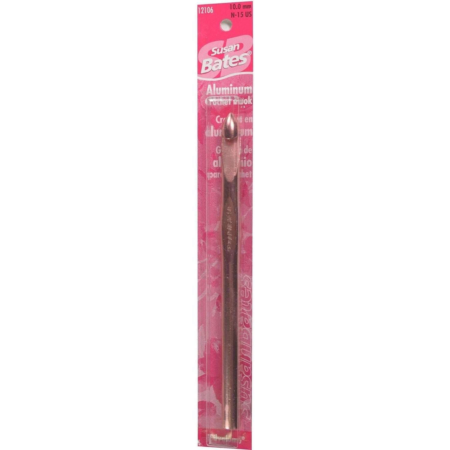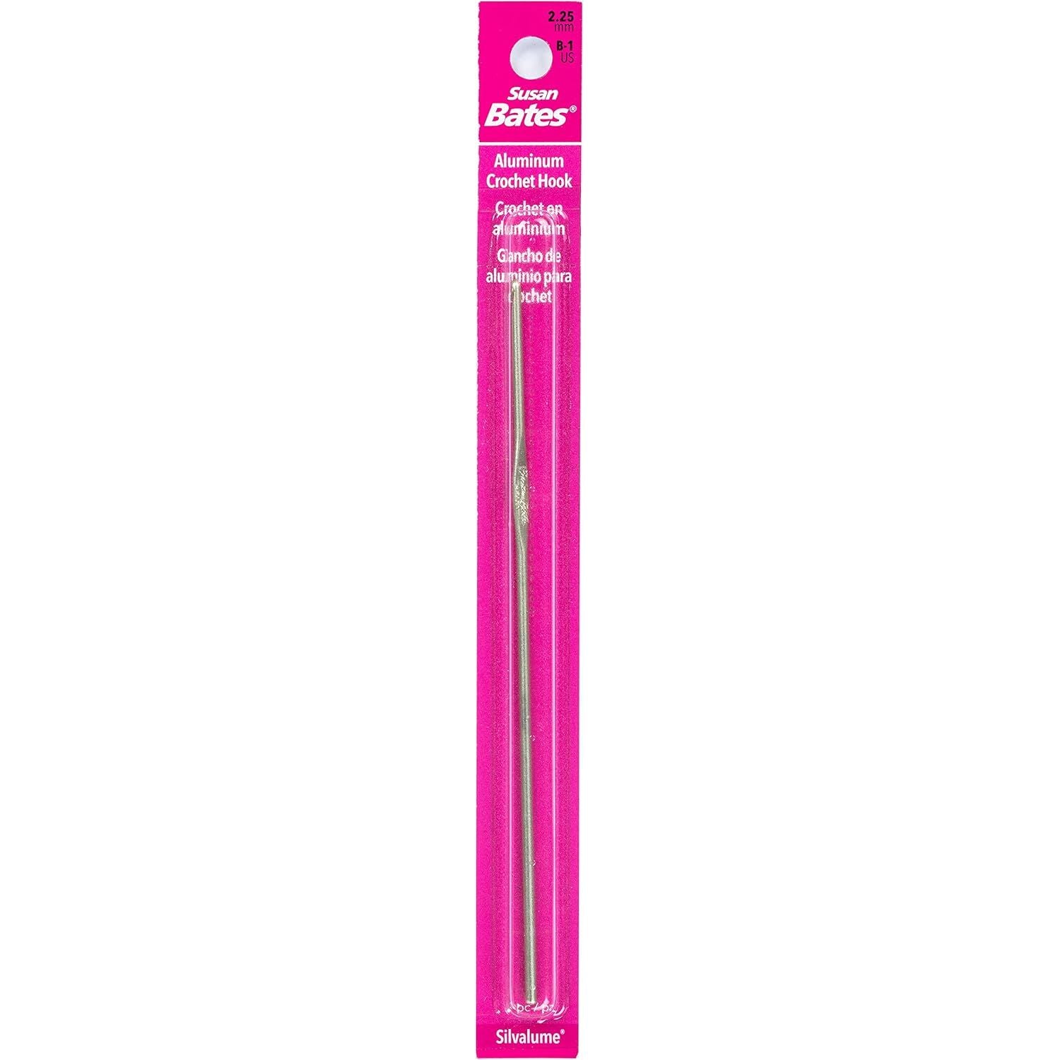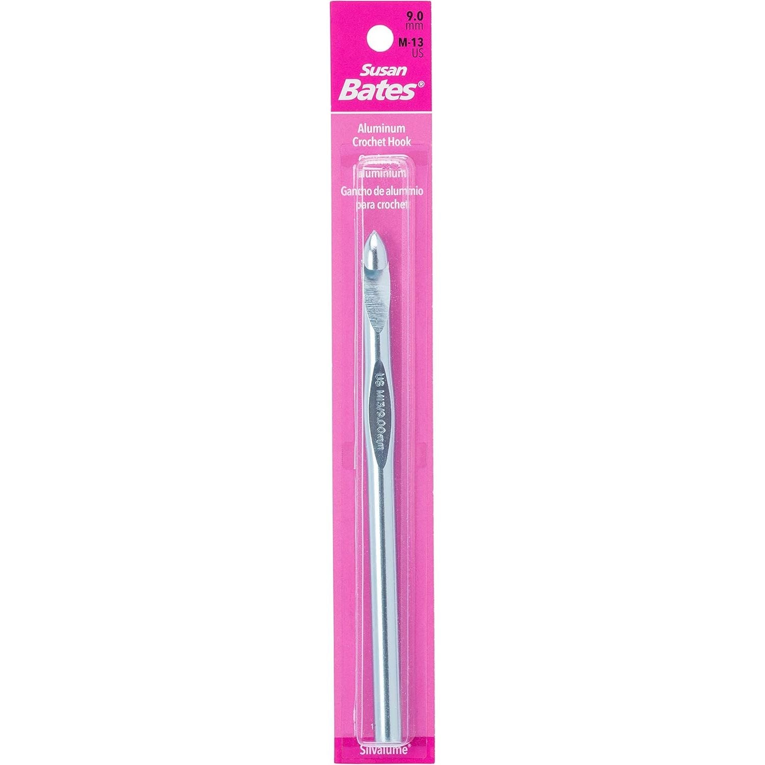 These hooks have the biggest size range in the Susan Bates label. Made of lightweight aluminum, each Silvalume hook undergoes a special anodizing process that etches away all surface impurities. In addition, each hook is heat treated for strength and durability and polished for a velvety smooth finish. The famous in-line head helps reduce wrist motion for fatigue-free crocheting and helps maintain a more consistent gauge. This package contains a 5.5 inch aluminum crochet hook. Size: I9/5.5mm. Imported.