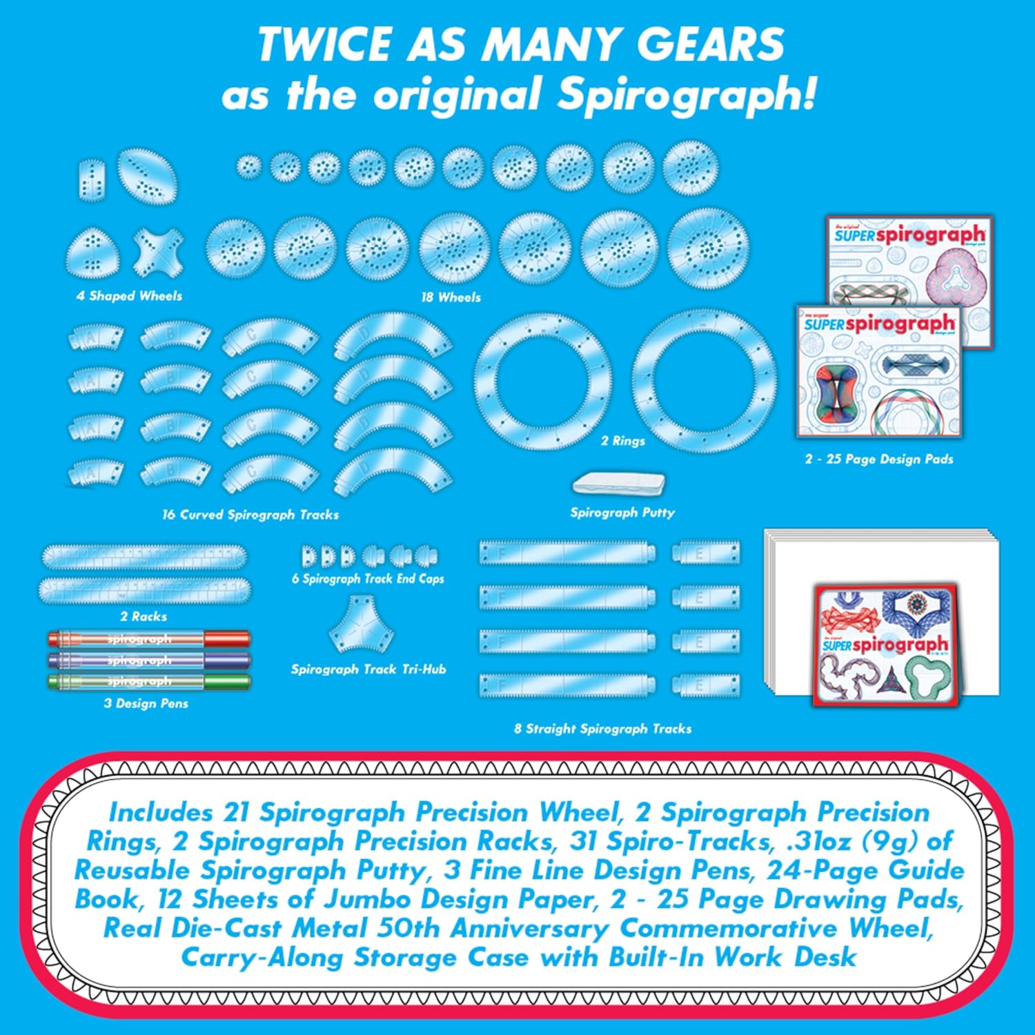 - Spirograph Super 50th Anniversary Set –Arts and Crafts, Kids Toys, Art Supplies, Craft Supplies, Drawing Kit, Spiral Art, Classic Gear Design Kit, Case, Pens, Design Sheet Included, Ages 8+