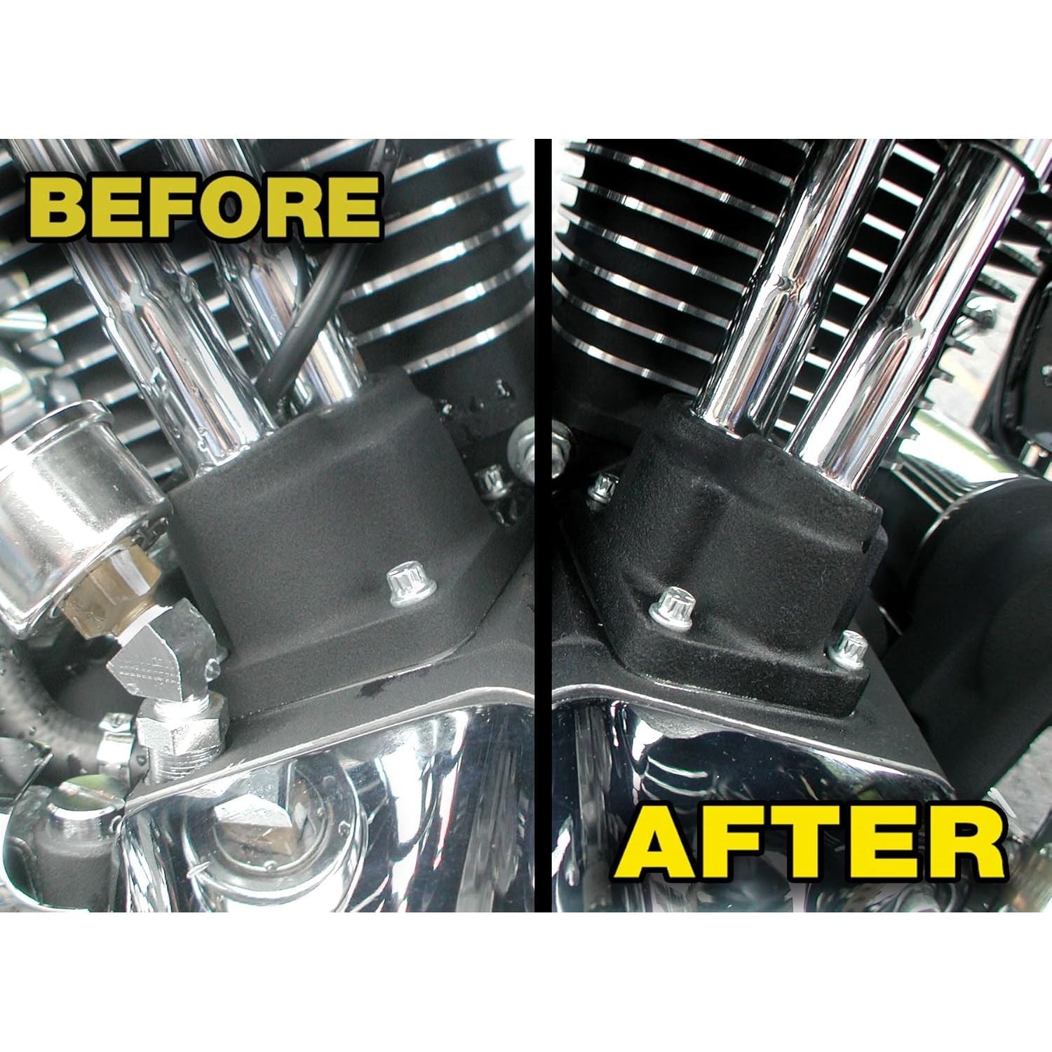 S100 Engine Brightener can take a tired, grayed-out engine and make it look almost factory-new again. Just clean the engine and dry, then spray-on S100 Engine Brightener. Use the handy misting spray nozzle to get into the cooling fins and crannies without over-applying. That factory black look comes back and lasts for miles and miles and holds up to a bunch of washes too.