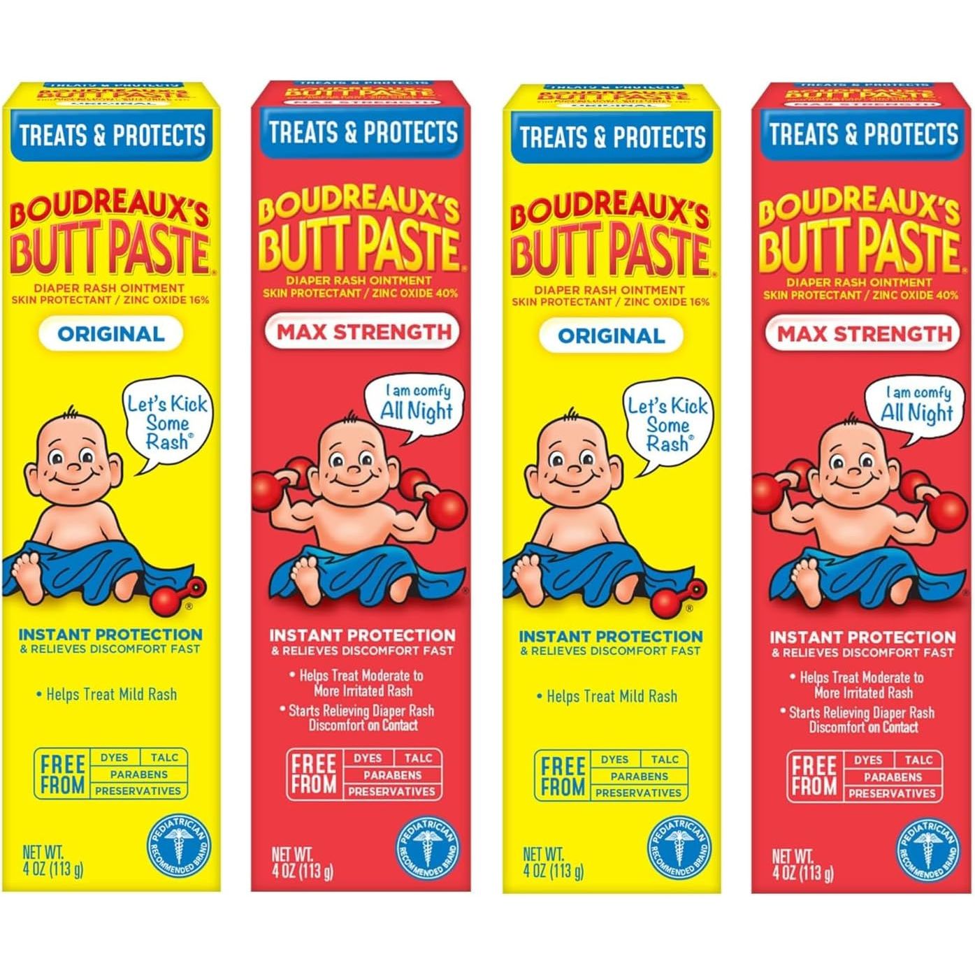 Developed by a pharmacist and father of four, Boudreaux's Butt Paste Brand has been trusted for over 40 years by pediatricians and parents to help protect irritated skin due to diaper rash and to instantly seal out wetness. When used daily, it is also a great way to help prevent diaper rash. Original Boudreaux's Butt Paste Diaper Rash Ointment is a thick, cream-like protective diaper rash paste with 16% Zinc Oxide and is ideal for treating mild diaper rash. It seals out moisture and helps keep baby’s boo-tay dry. Original Boudreaux's Butt Paste is free from dyes, preservatives, parabens and talc. Don't forget to keep your baby’s butt protected and your hands mess free with our diaper rash cream and ointment brush applicator. Boudreaux’s Butt Paste has diaper ointments for any baby’s boo-tay needs including maximum strength, sensitive, natural* aloe, and butt barrier. Boudreaux's Butt Paste products are FSA- and HSA-eligible in the U.S. *Other ingredients may not be natural. Natural refers to the source of listed ingredients and allows for only minimal, non-chemical processing of these ingredients.