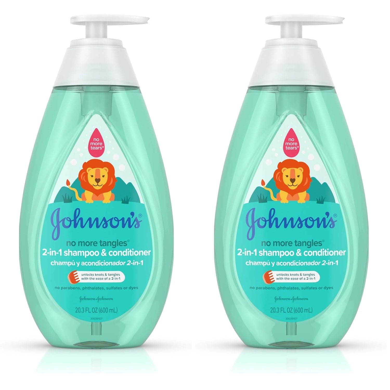 Cleanse, condition, and detangle your child's hair in just one step using Johnson's Kids No More Tangles 2-in-1 Detangling Hair Shampoo & Conditioner for kids and toddlers. Specially designed to help keep kids and toddler's hair manageable, this 2-in-1 shampoo and conditioner for toddlers' developing hair helps detangle knots for soft, smooth, easy-to-manage hair. The No More Tears formula is as gentle to the eyes as pure water. This tear-free cleansing and conditioning haircare essential is hypoallergenic; pediatrician tested; and free of parabens, sulfates, and dyes and is designed to be gentler than adult products. Johnson's products are designed to meet or exceed the top internationally recognized regulatory standards. To use, wet child's hair with warm water, apply the 2-in-1 shampoo and conditioner, gently lather and rinse. For best results, use this 2-in-1 shampoo and conditioner duo with Johnson's No More Tangles Detangling Spray.