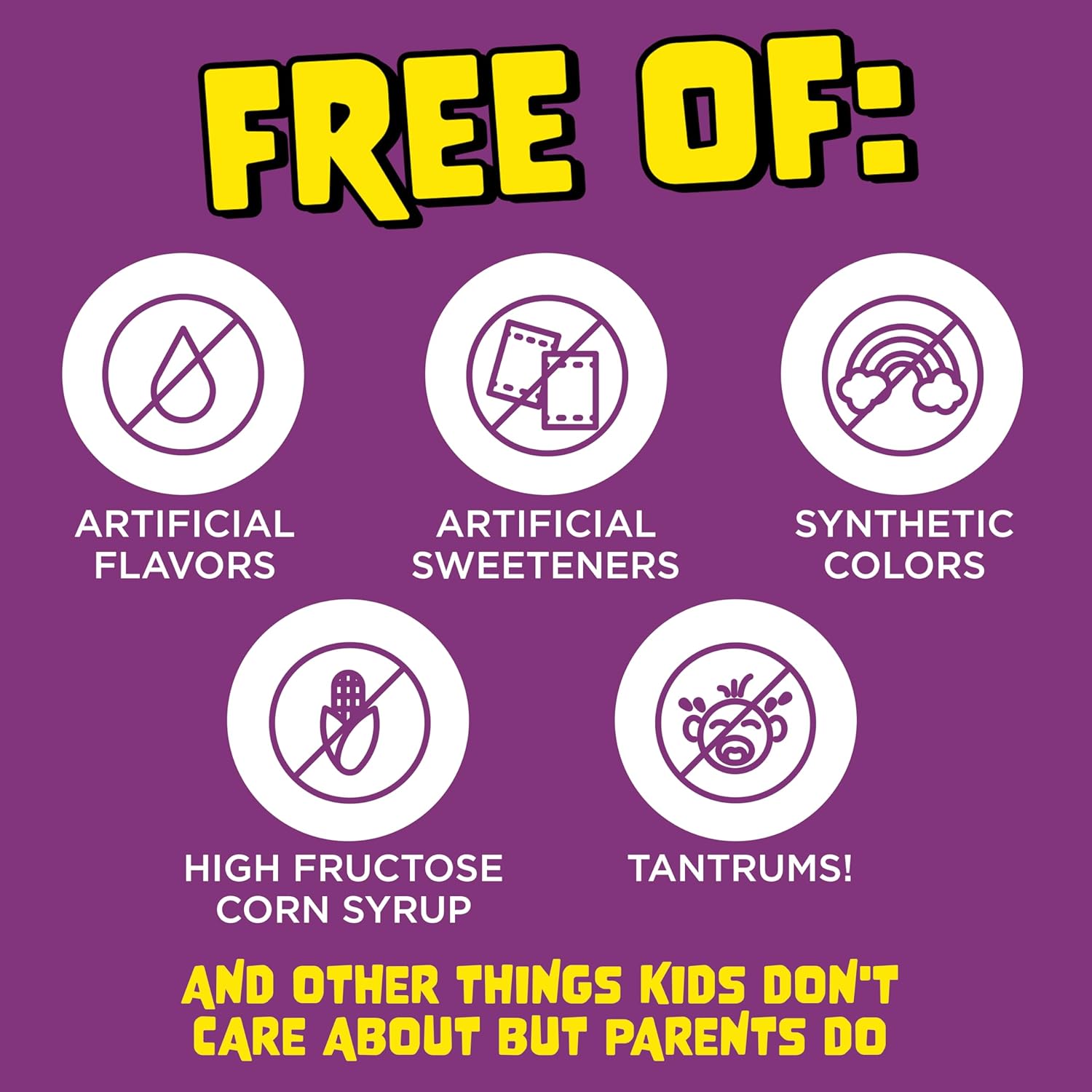 - Good stuff in, other stuff out: Free of synthetic colors, artificial flavors, artificial sweeteners, egg allergen, fish/crustacean shellfish allergens, dairy (milk) allergens, and more—things kids don’t care about but parents do.