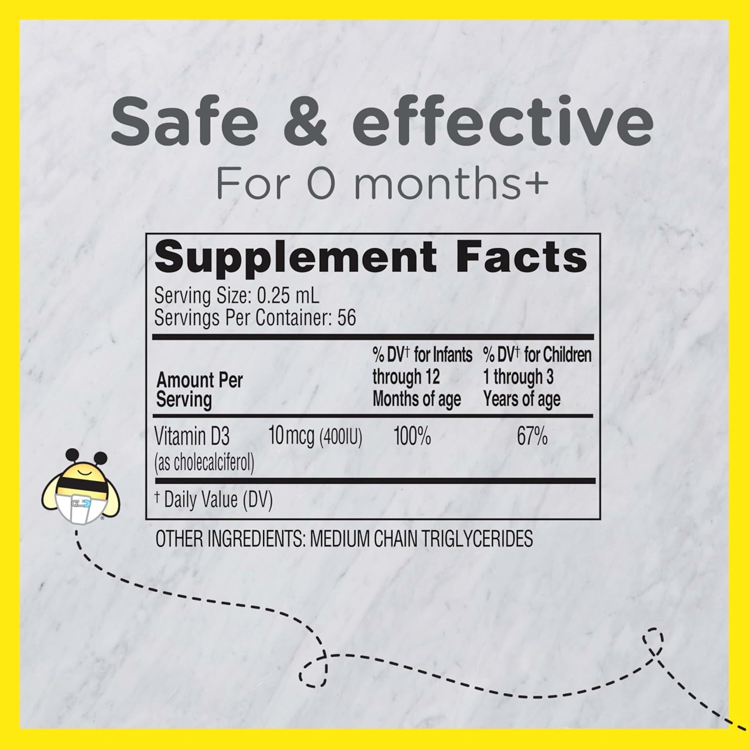 - Zarbee's Vitamin D Drops for Infants, 400IU (10mcg) Baby & Toddler Liquid Supplement, Newborn & Up, Dropper Syringe Included, 0.47 Fl Oz