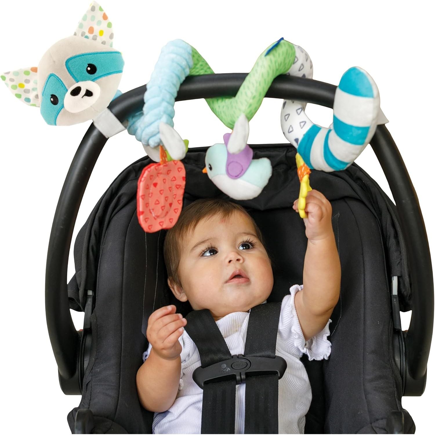 This fun spiral includes four visually delightful hanging toys in perfect batting and grabbing range. Perfect for baby's gross motor skill development and visual tracking.