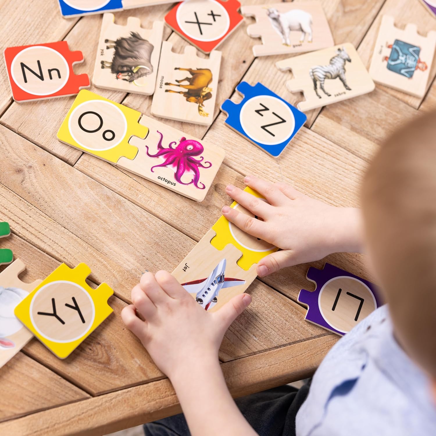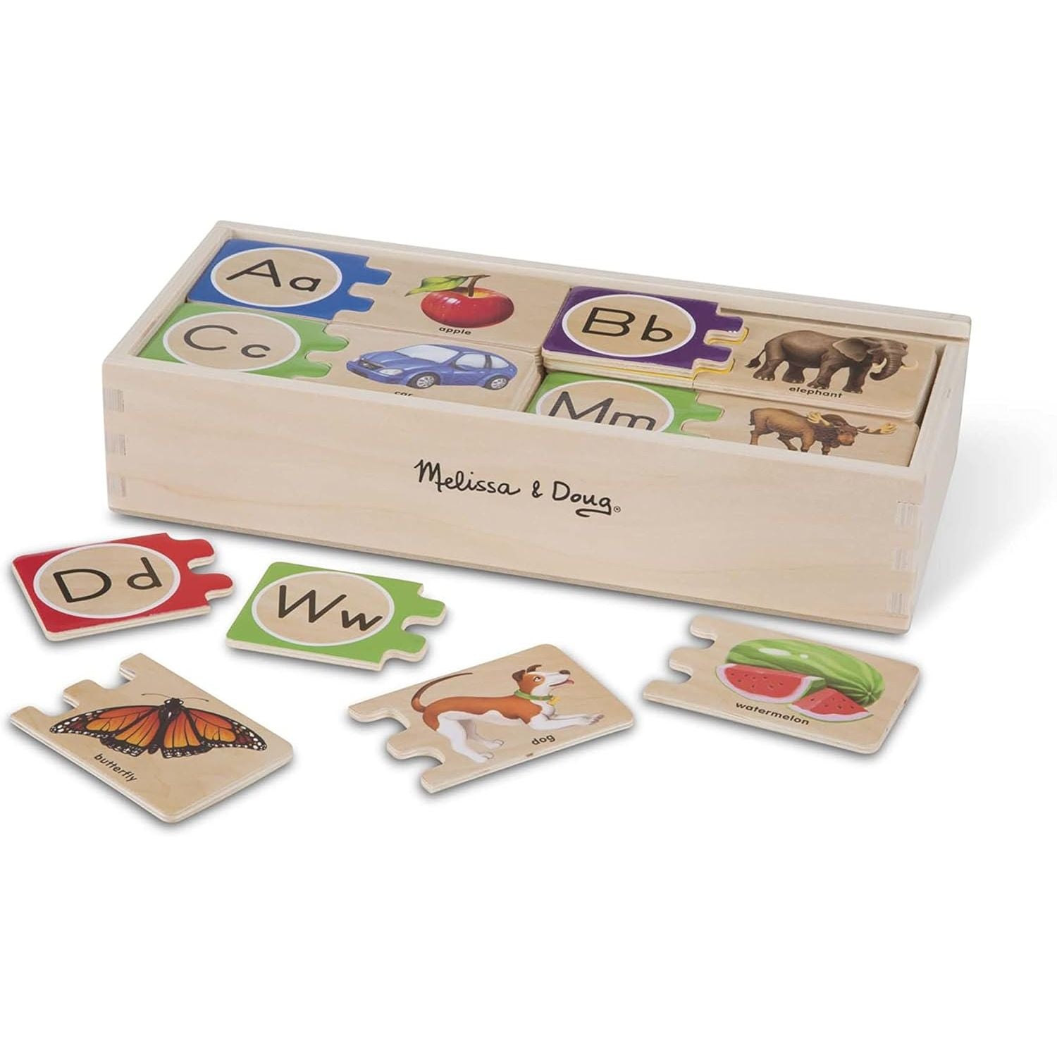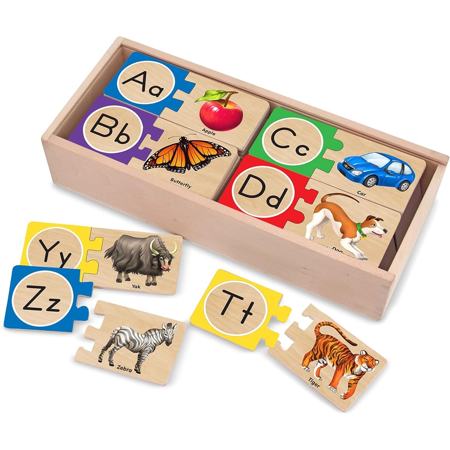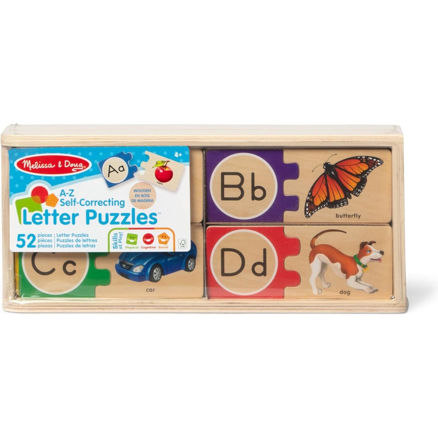 - Melissa & Doug Self-Correcting Alphabet Wooden Puzzles with Storage Box (52 pcs) ABC Puzzles, Wooden Alphabet Puzzle for Kids Ages 4+