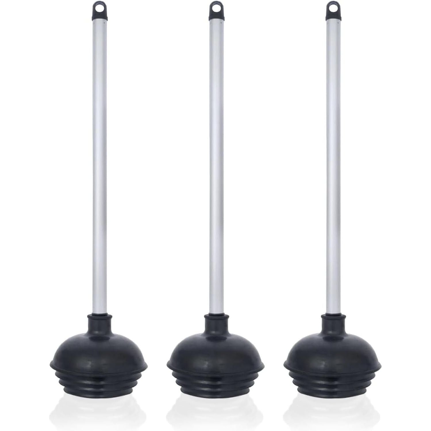 - LIGHTWEIGHT DRAIN PLUNGER: Our heavy-duty plunger is light and durable and has an easy-to-clean aluminum handle. The handle features a peg hole, so you can hang this device in any bathroom or storage closet. Perfect for personal or commercial use!