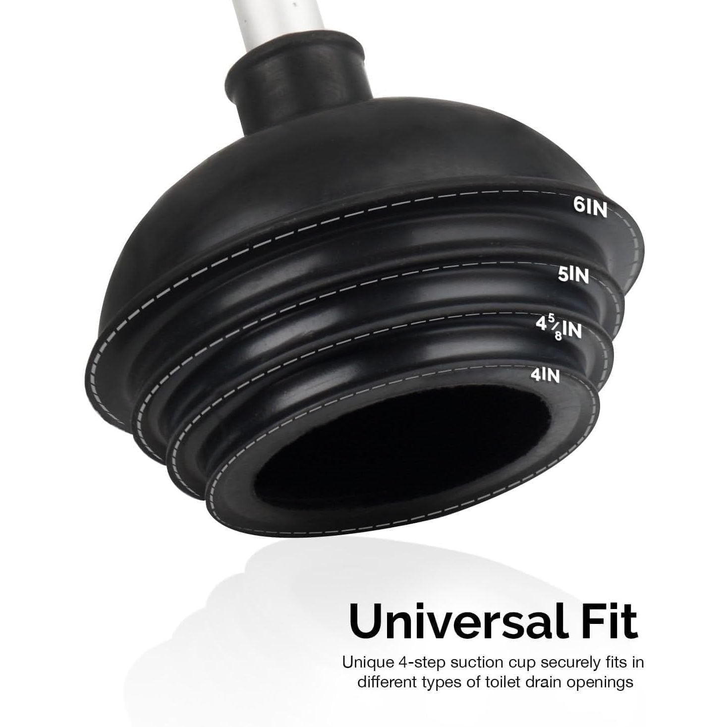 - PATENTED PLUNGER: Our 60166A Toilet Plunger fits any toilet bowl! With a unique 4-step level suction cup that fits securely in all different types of toilet openings, this device makes easy work of the toughest clogs.