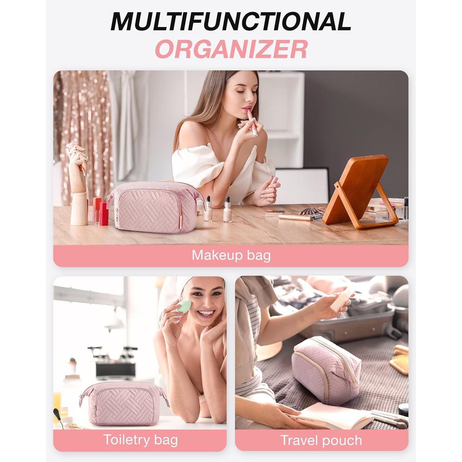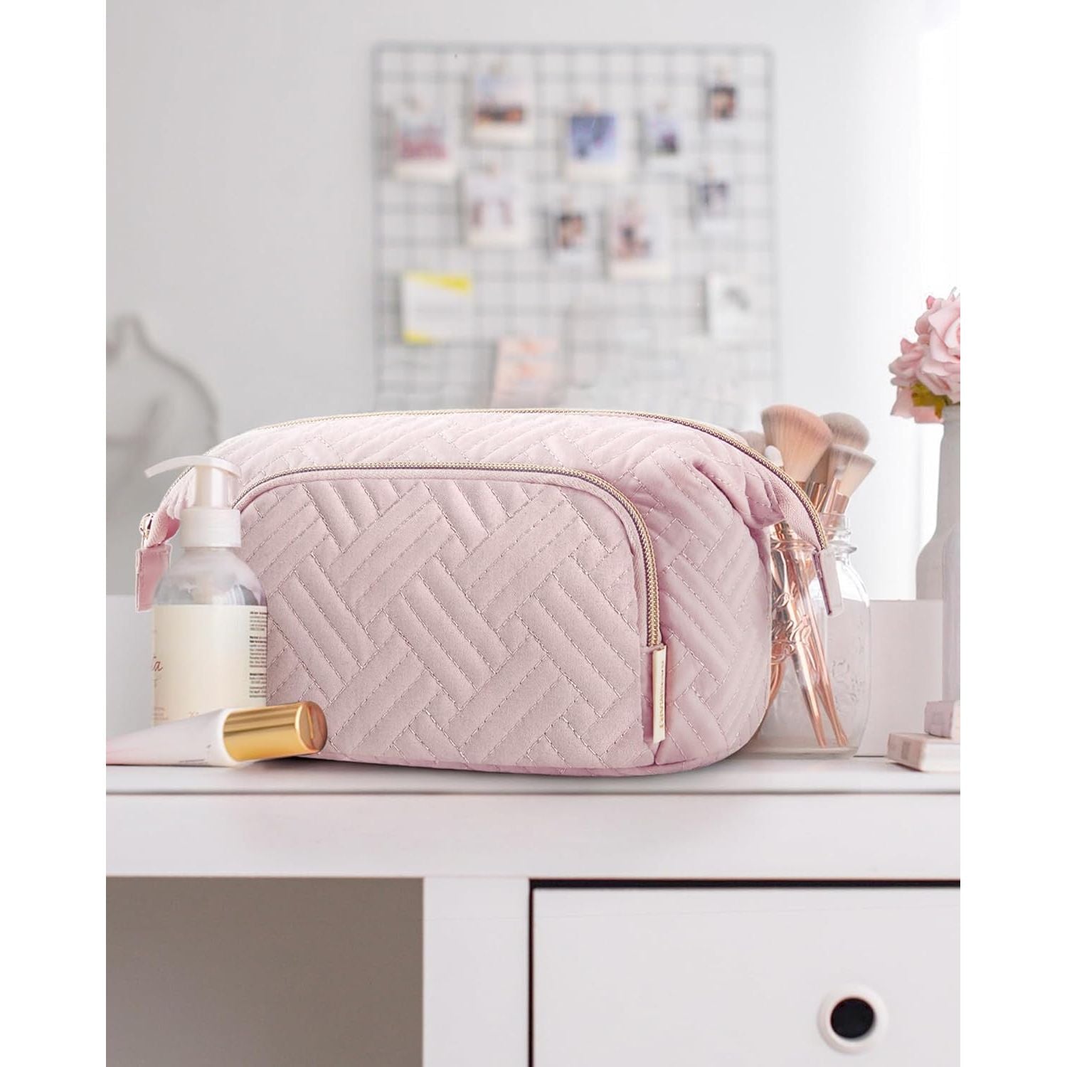 - 【 HIGH QUALITY 】- Cosmetic bag is Made of water-resistant polyester, soft and durable. Well-padded design of makeup bag organizer provides great protection performance. Metal zippers makes makeup pouch exquisite.