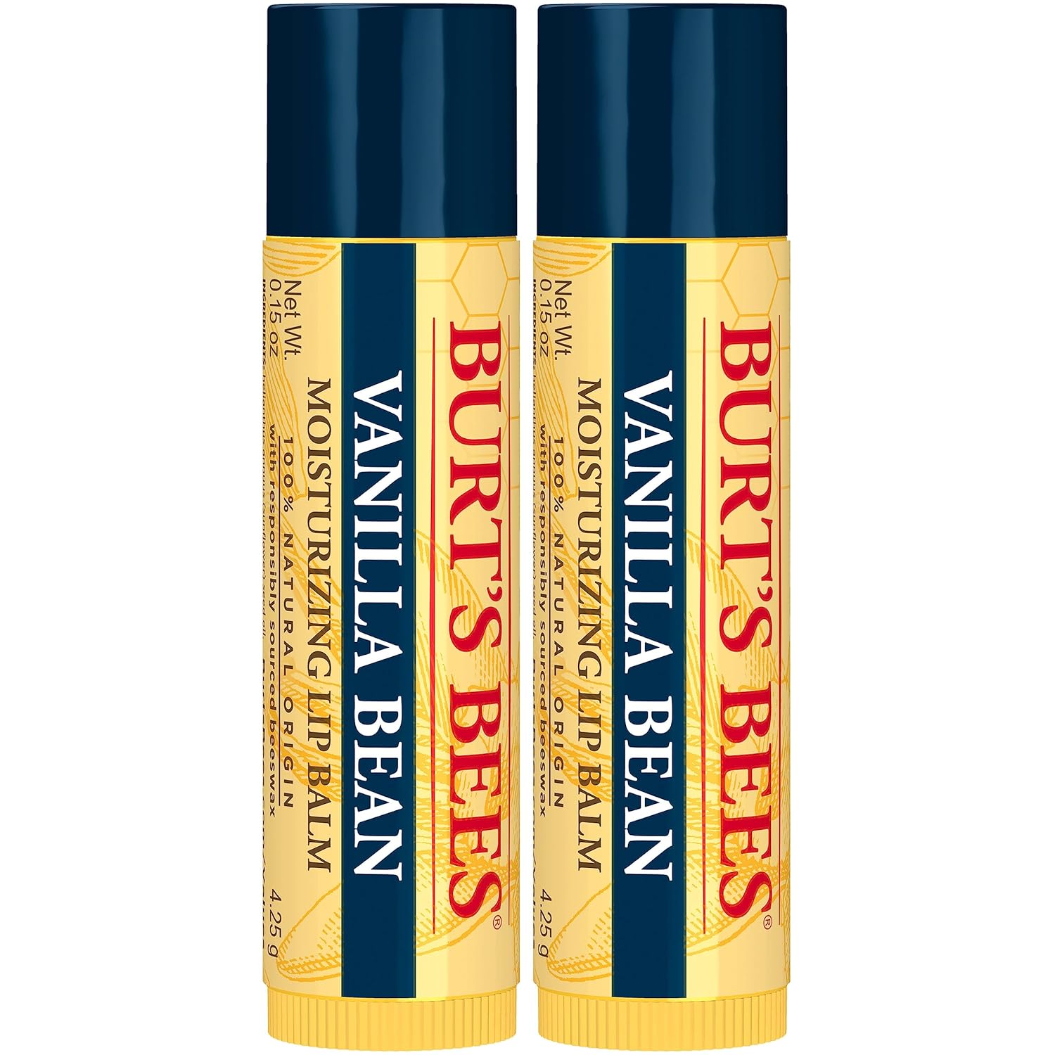 - Burt's Bees Lip Balm - Vanilla Bean, Lip Moisturizer With Responsibly Sourced Beeswax, Tint-Free, Natural Origin Conditioning Treatment, 2 Tubes, 0.15 oz.