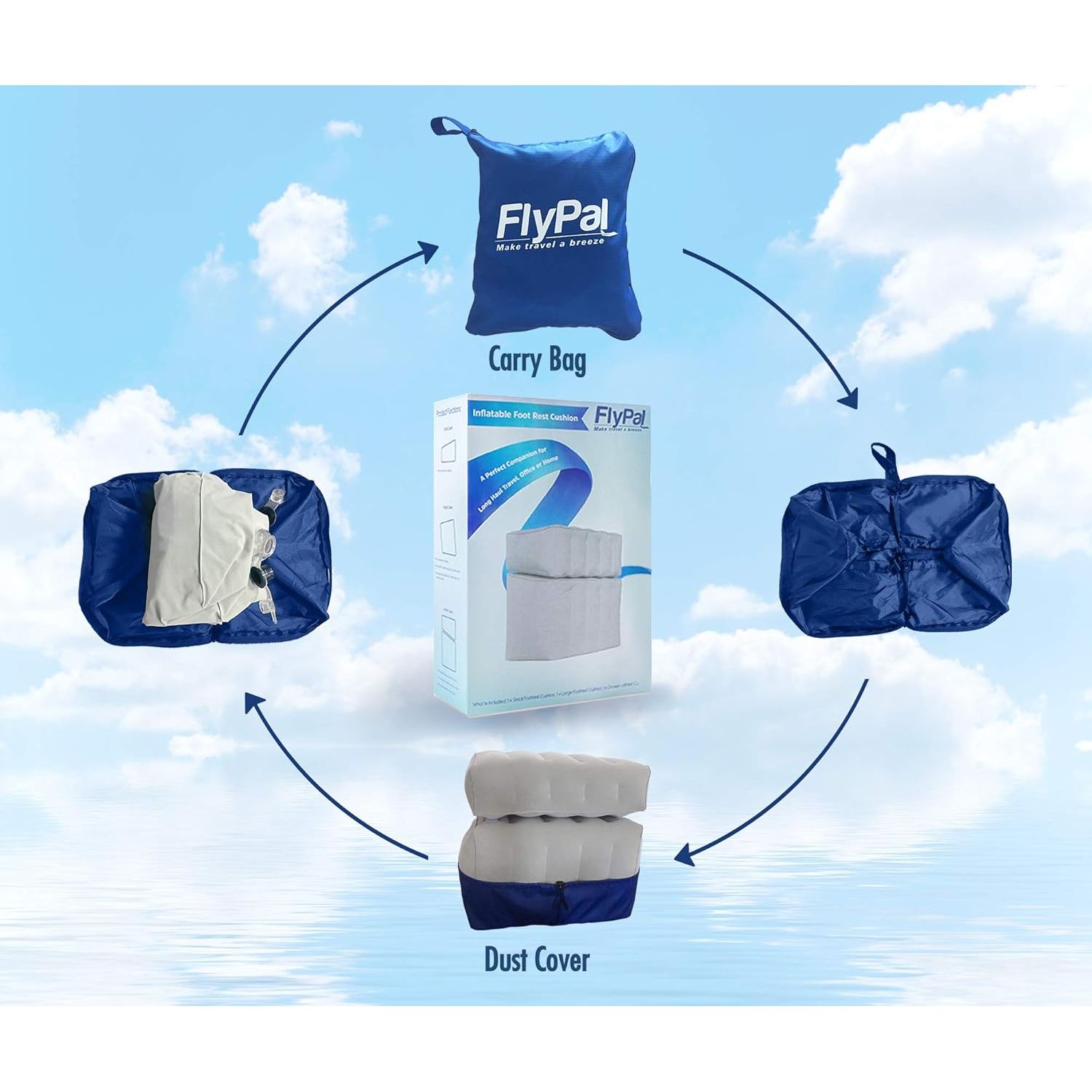 Flypal Inflatable Foot Rest Pillow for Travel, Patented 2 in 1 Design, Blow-Up Footrest Cushion for Home, Office. Airplane Travel Essential and Kids Airplane Bed