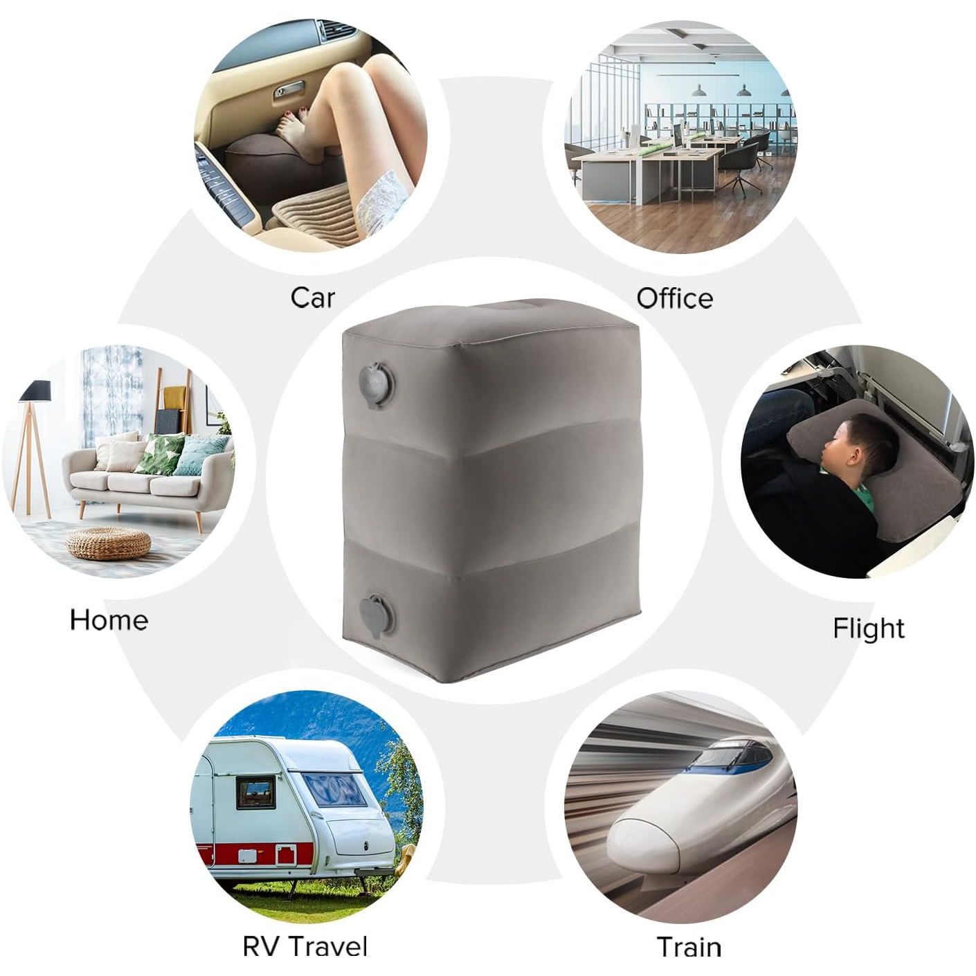 Inflatable Travel Foot Rest Pillow, Kids Airplane Bed, Adjustable Height Leg Pillow for Air Travel, Make a Flat Bed for Kids and Toddlers, Great for Airplane, Train, car(Grey, 1 Pack)