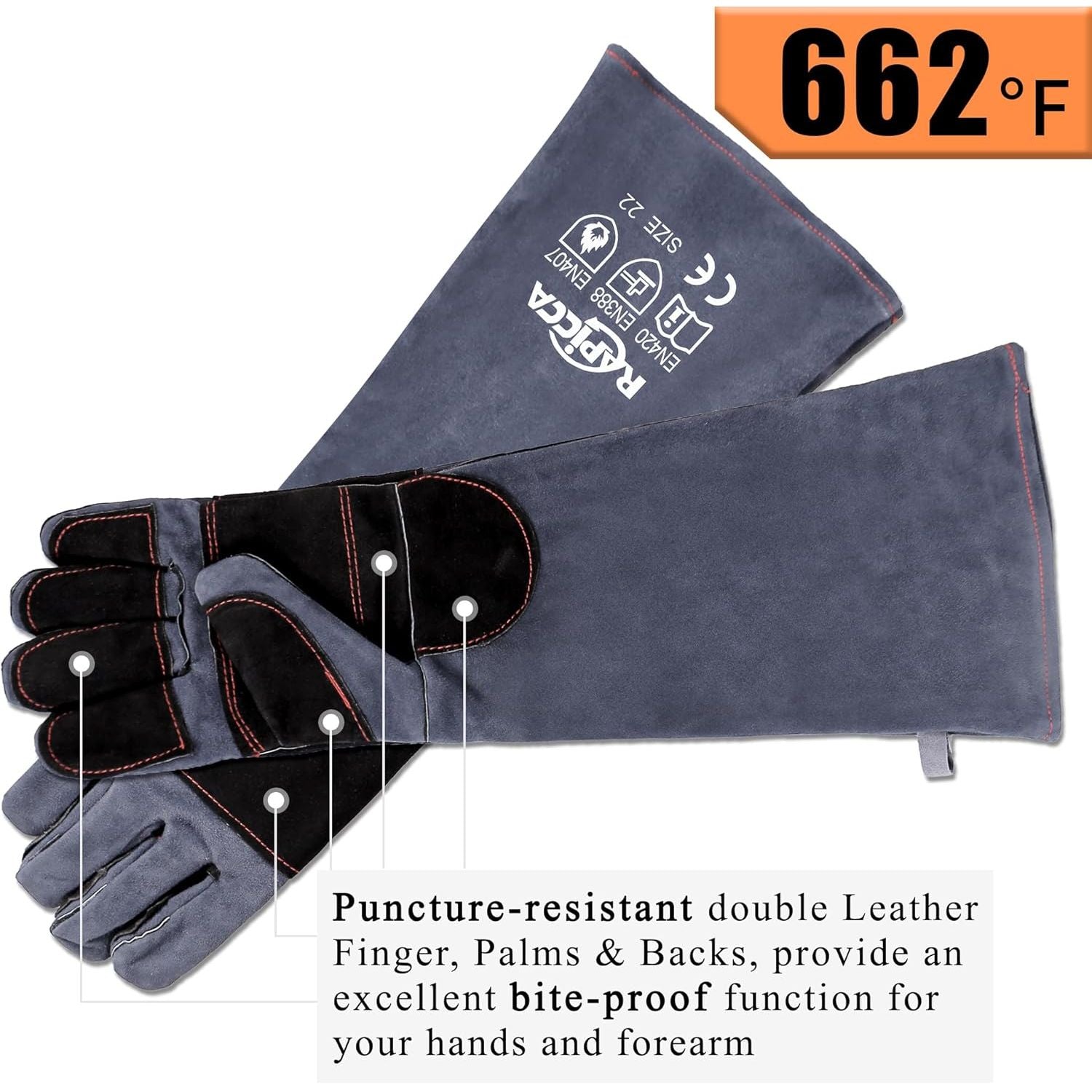 - EXCELLENT BITE PROOF: RAPICCA Leather Animal Handling Gloves is made by Top Grain Leather and reinforce Double Leather Finger Palms & Backs, provide an excellent bite-proof function from small animal for your hands and Forearm.