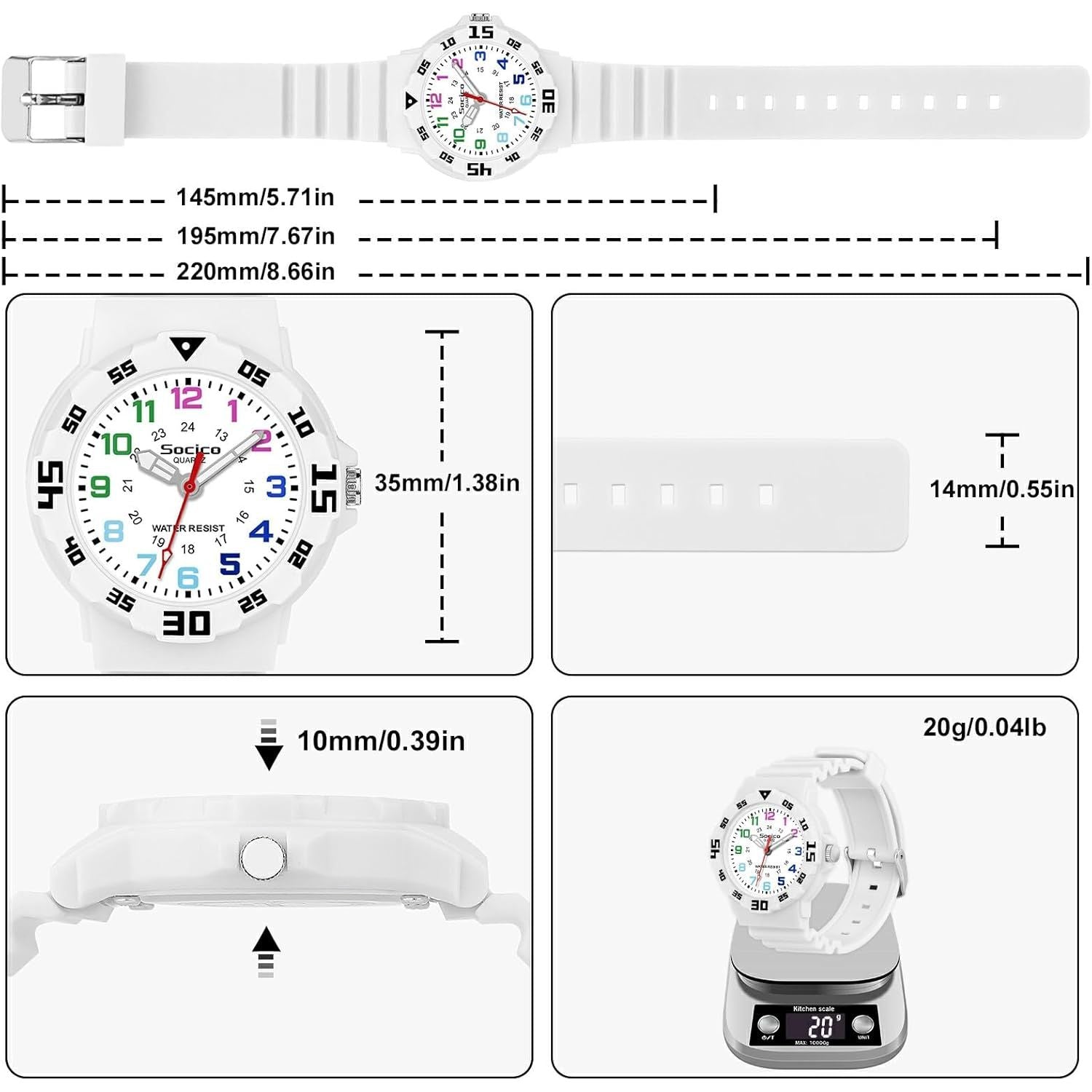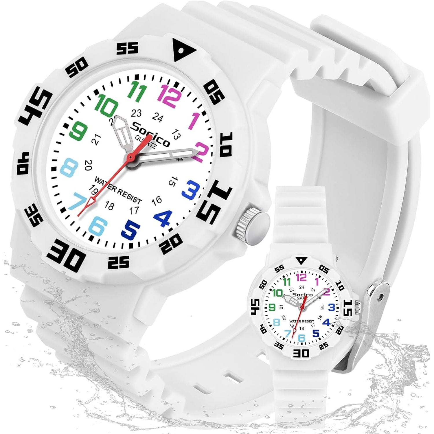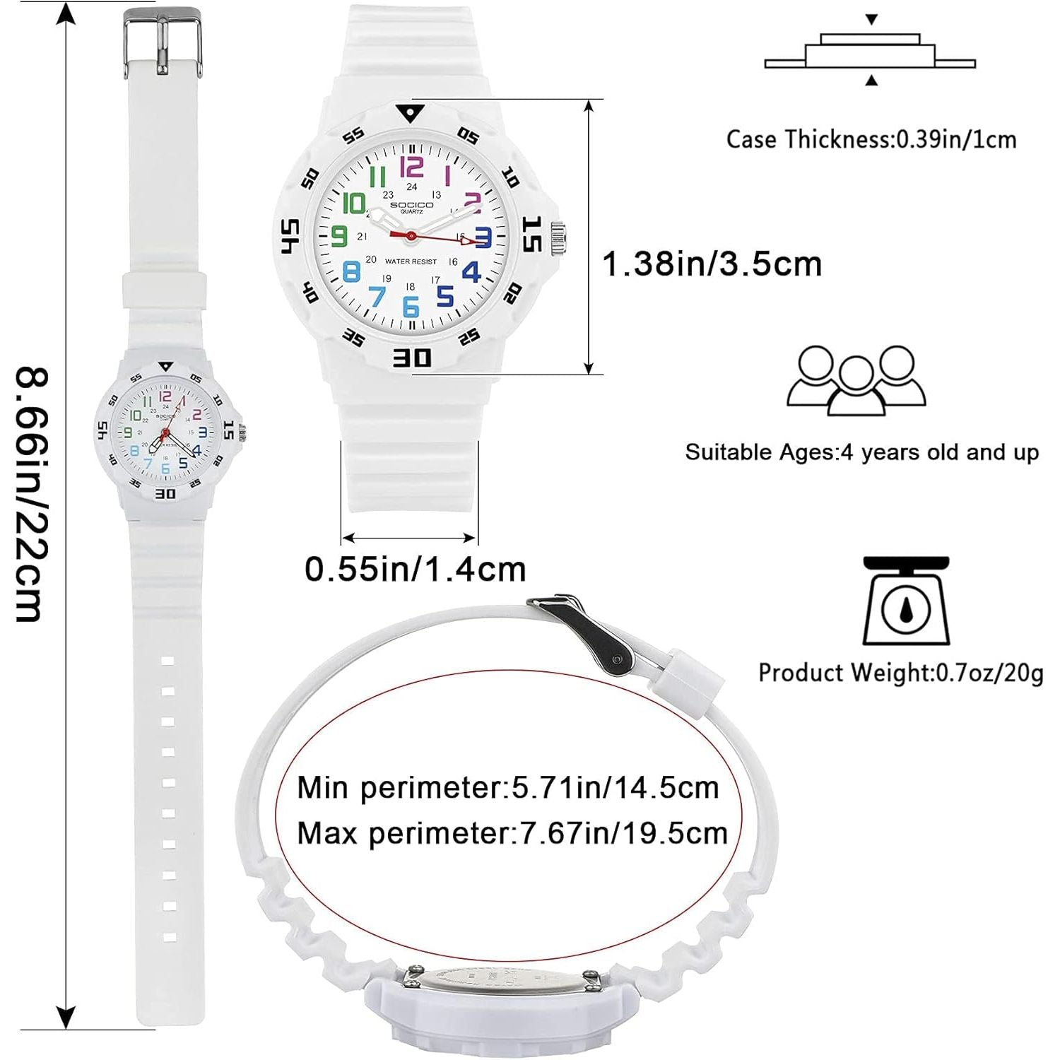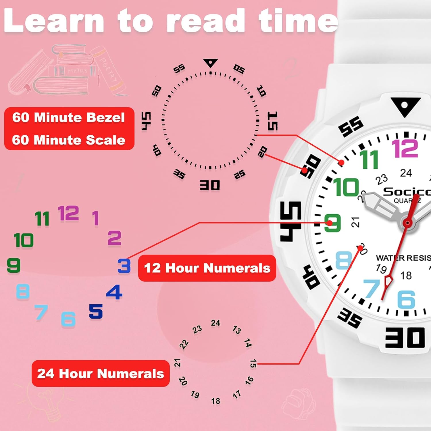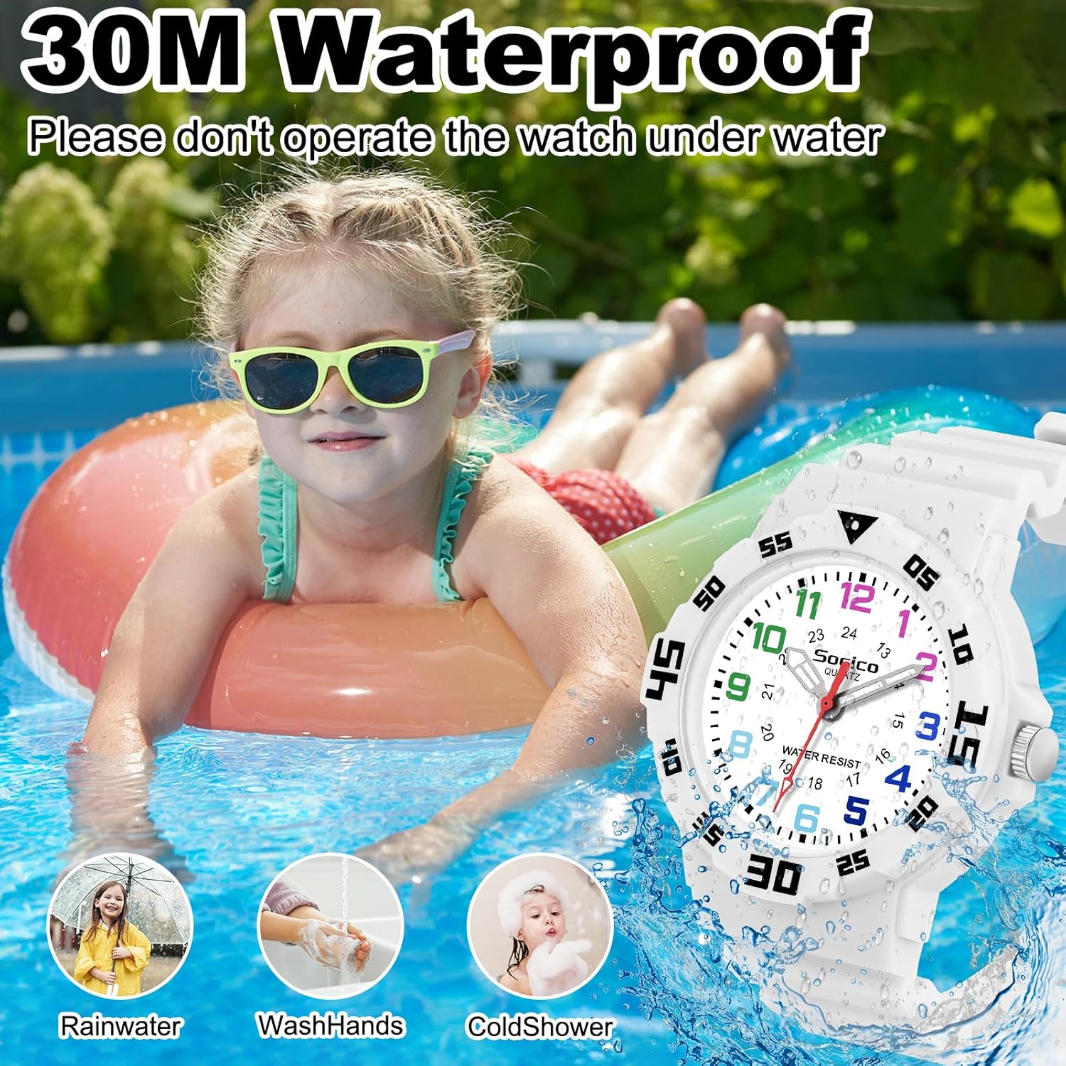 SOCICO Children Analog Watch for Boys Girls Waterproof Time Teaching Watch with Soft Band, Learning Time Wrist Watch Easy to Read Christmas Gifts for Kids Ages 3-12 Great Gifts