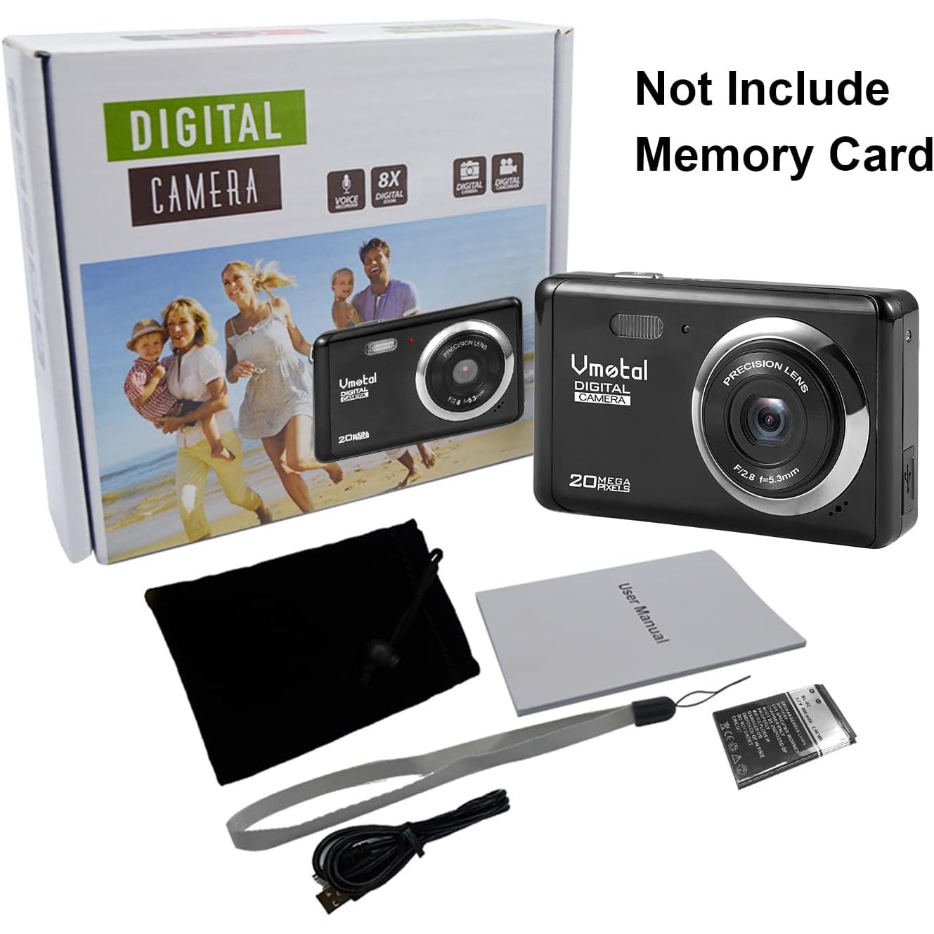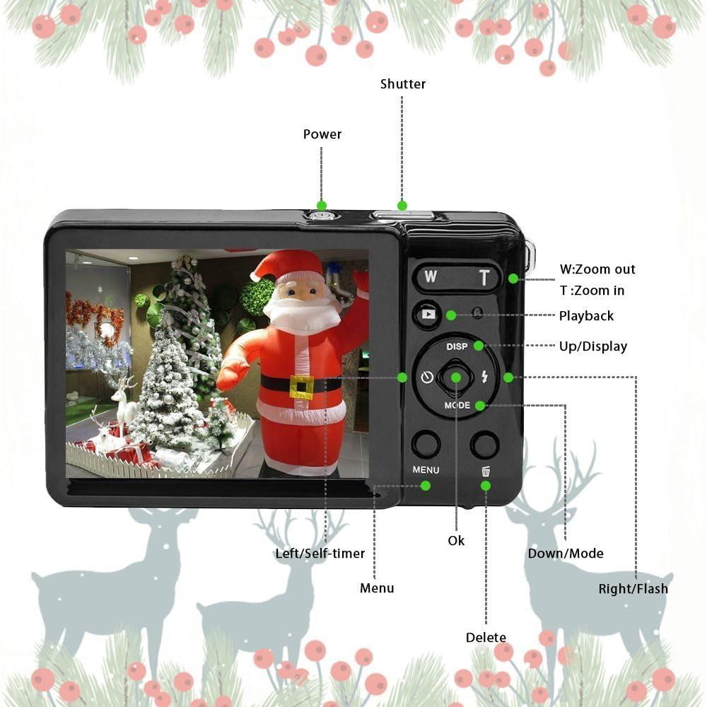 - 2.8 inch LCD Rechargeable Mini Digital Camera, Vmotal 1080P Video Camera Digital Students Cameras 20MP Compact Camera Travel,Holiday,Birthday Present for Kids/Beginners/Teens/Seniors (Black)