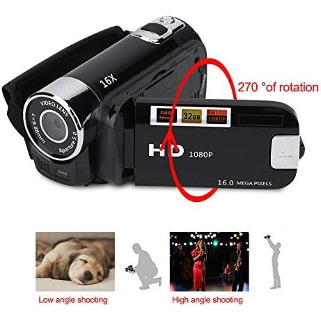 - ASHATA Video Camcorder 1080P 16MP 270 Degree Rotation LCD Screen 16X Digital Zoom Video Camera with with COMS Sensor, The Best Frinend and Family (Black)