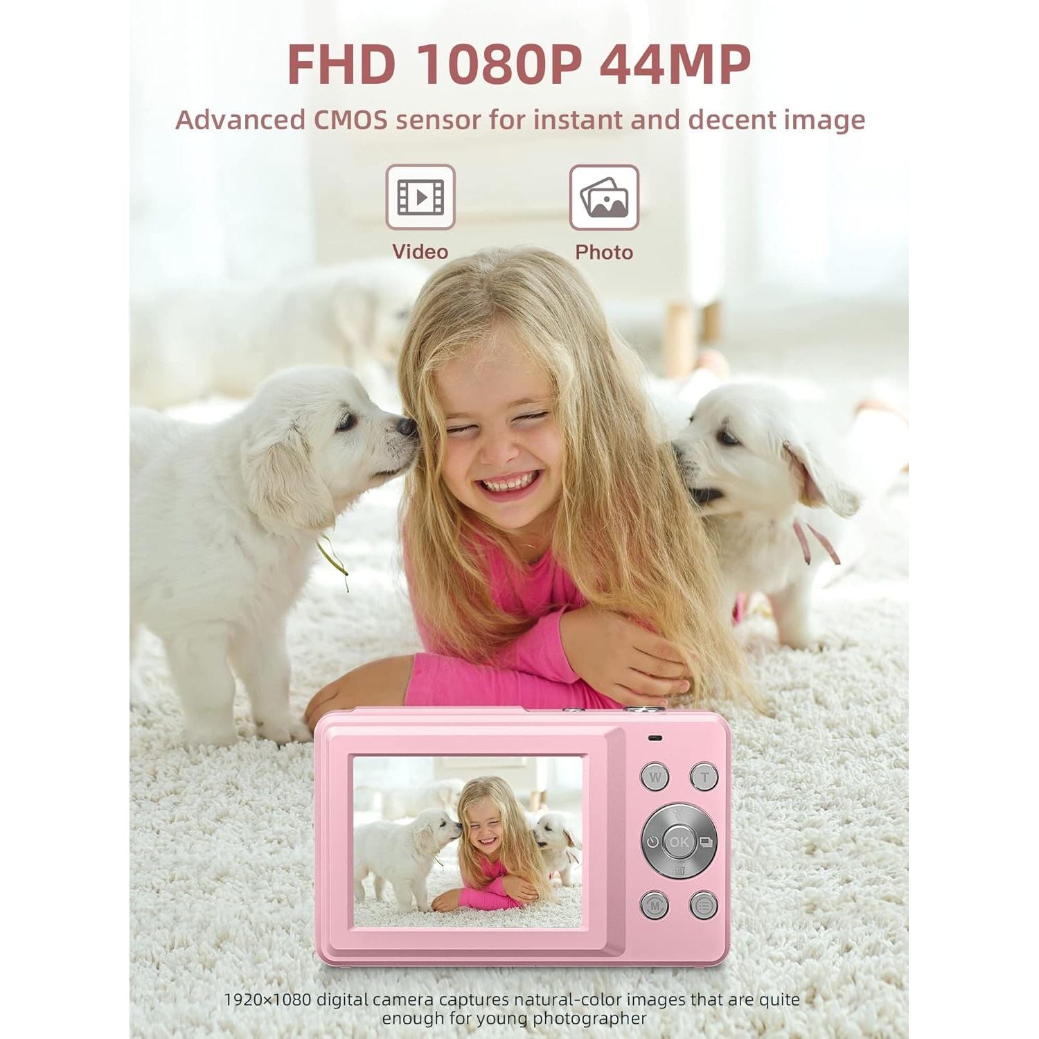 - SHOOT DECENT IMAGES WITH EASE - The digital camera captures high-clarity FHD 1080P videos and 44MP photos with the newest CMOS metering system, no need for complicated manual settings while delivering natural color images automatically. One second to press the shutter, it's easy for starters and kids.