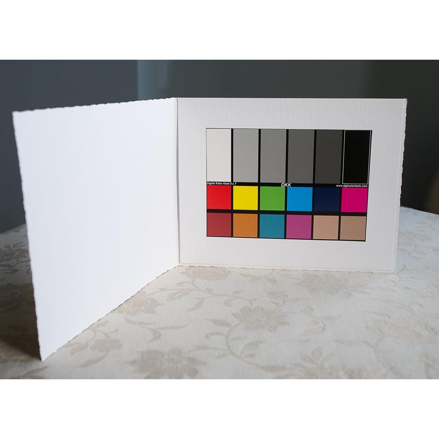 - DKK 5" x 7" Set of 2 White Balance and Color Calibration Charts with 12% and 18% Gray - Includes Frame Stand and User Guide