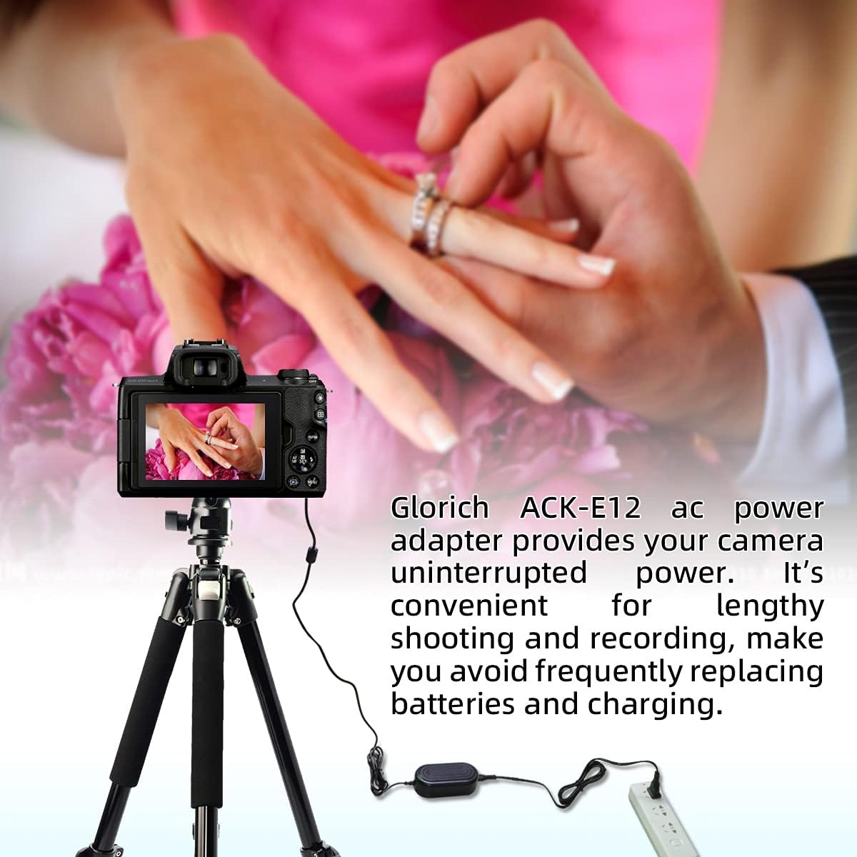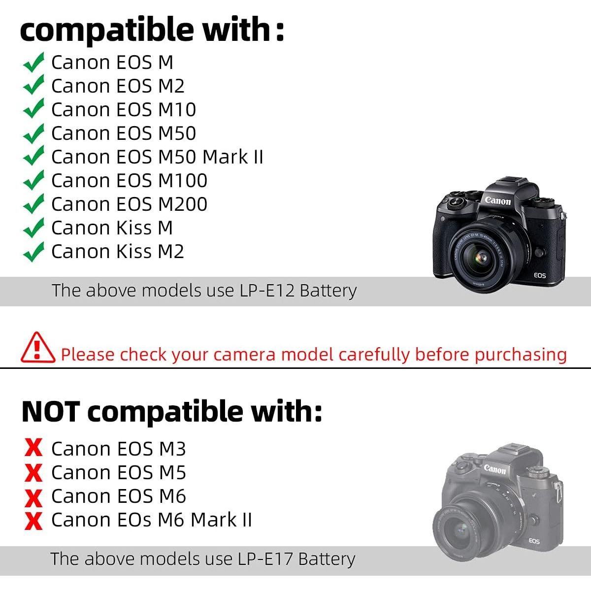 - Glorich ACK-E12 AC Power Adapter DR-E12 DC Coupler LP-E12 LPE12 Dummy Battery Kit for Canon EOS M200, M100, M50 Mark II, M50, M10, M2, M, Kiss M, Kiss M2 Mirrorless Digital Cameras.