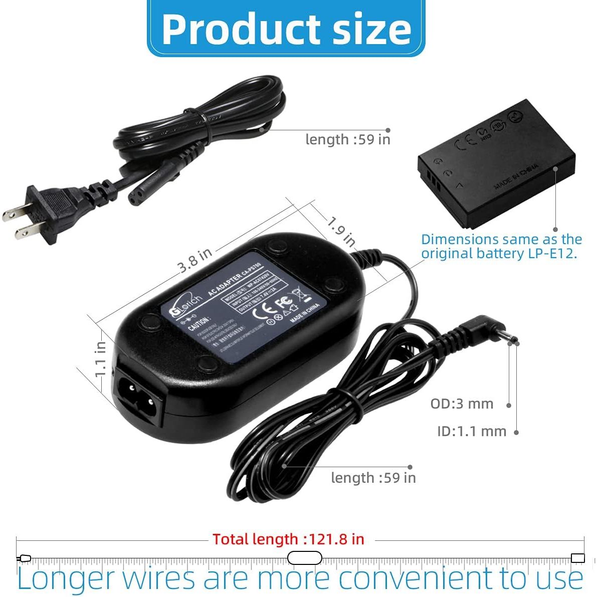 - 【Compatible Models】Glorich ACK-E12 AC Power Adapter DR-E12 DC Coupler LP-E12 Dummy Battery Kit for Canon EOS M, M2, M10, M50, M50 Mark II, M100, M200, Kiss M, Kiss M2 Mirrorless Digital Cameras