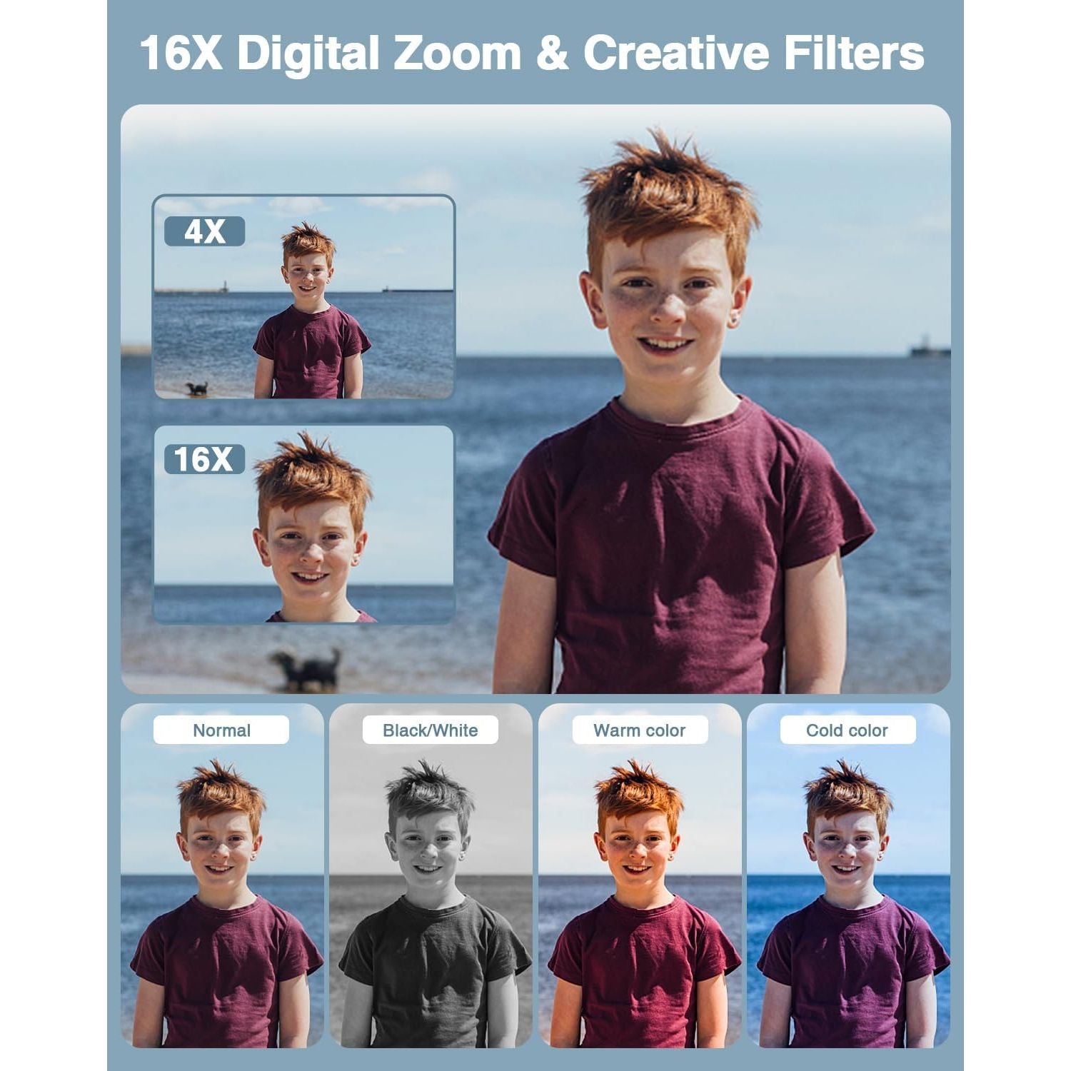 - Safe Materials & Creative Filters - Made of high-grade and eco-friendly reliable materials, the kid camera is safe and non-toxic, durable and withstands drops. This digital vlogging camera for teens also supports six cute filter effects to choose from, kids could create more adorable colorful pictures.