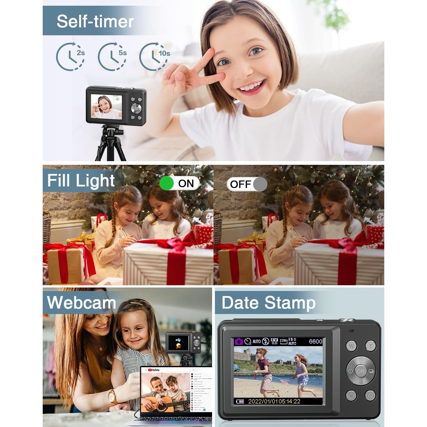 - Meaningful Gift - This black digital camera for kids is equipped with a high-level CMOS Sensor and anti-shake function, which helps to capture vivid clear 44MP Images and record stable smooth FHD 1080P resolution videos. It's a meaningful Christmas or birthday gift camera for kids to cultivate their interest in photography, experience the lovely life, and leave funny memorable moments with family or friends.