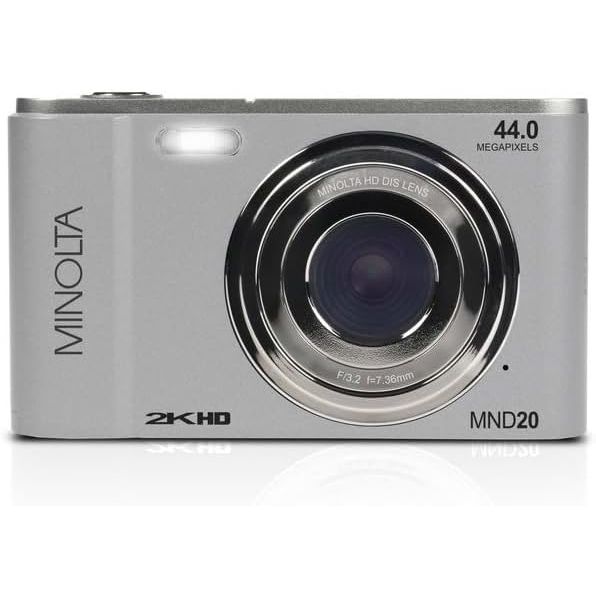 - Minolta MND20 44MP Digital Camera – 2.7K Ultra HD Video, 16X Digital Zoom, Anti-Shake Stabilization, Time Lapse, Face Detection, 2.9-inch LCD Display – Lightweight Compact Camera (Silver)