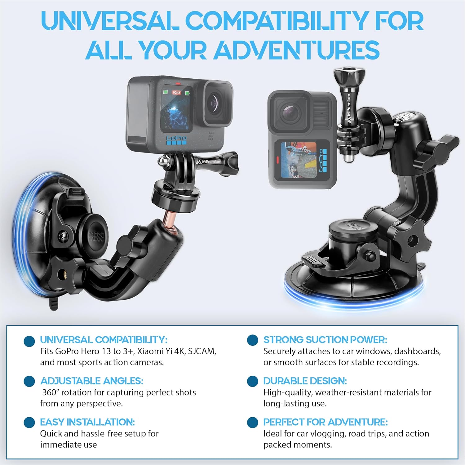 - MiPremium Car Suction Cup Mount for GoPro Hero 13 12 11 10 9 8 7 6 5 4 3 3+ 2 Session Black Silver XIAOYI 4K SJCAM Yi Sports Action Camera Dash Cam holder perfect for Boats Vehicle Windshield & Window