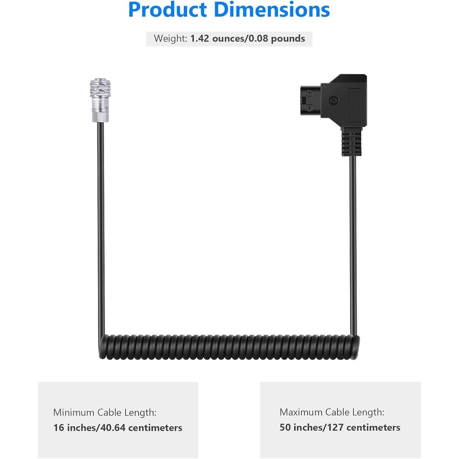 - Coiled cable for a flexible reach and neat setup. The cable length can stretch from 16 inches to 50 inches, allows your camera to connect the power more freely