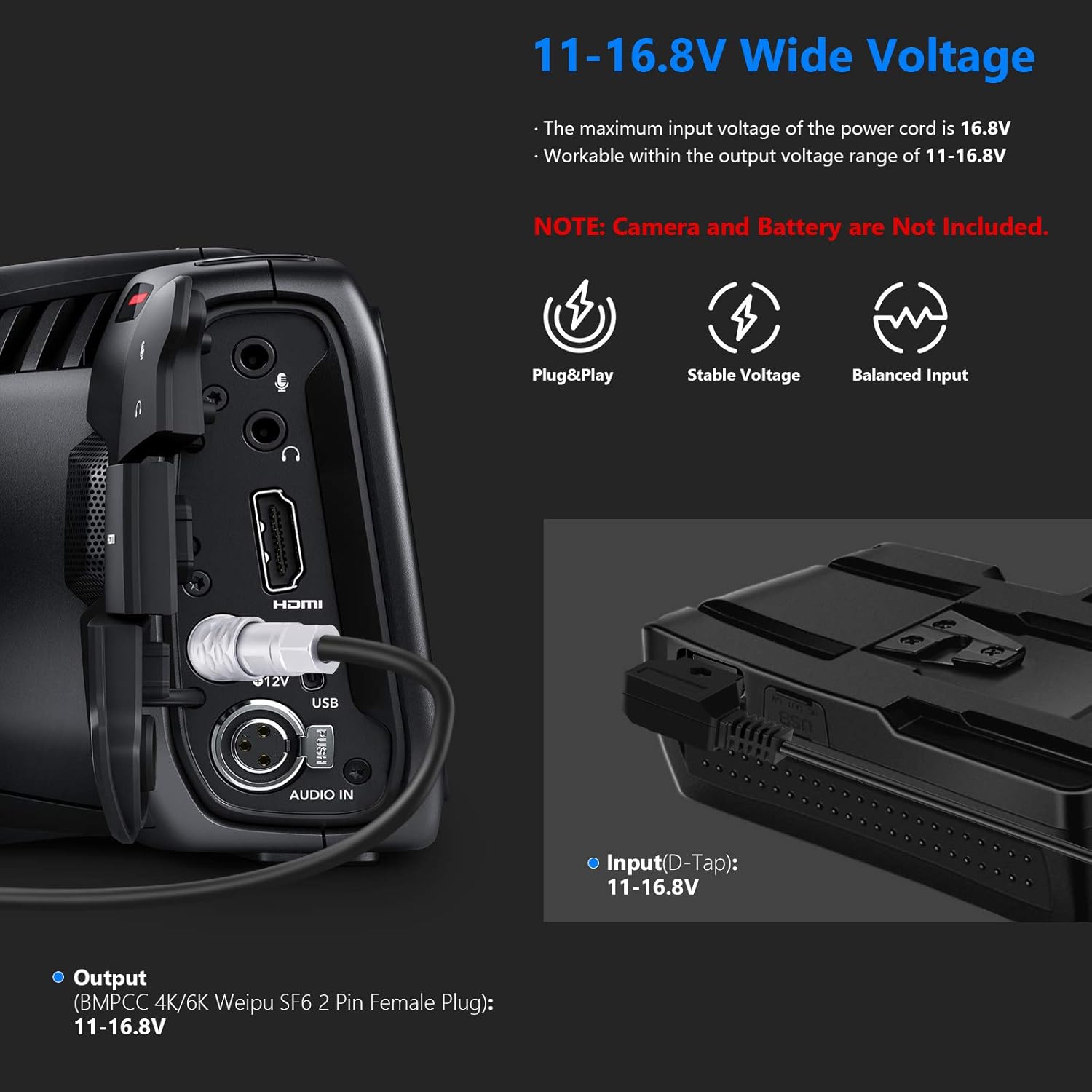 - The D-Tap to BMPCC 4K/6K Weipu power cable is specifically compatible with Blackmagic Pocket Cinema Camera 4K/6K