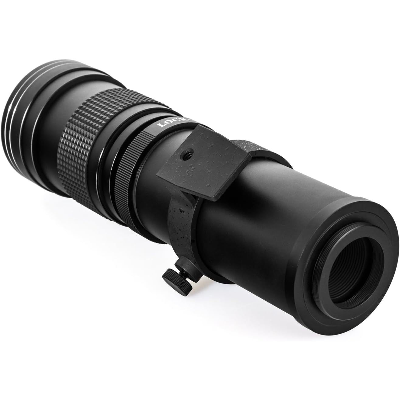 Surprisingly compact and lightweight for its focal length range, the Opteka 420-800mm f/8.3 Super Telephoto Zoom Lens excels on long backpacking excursions, just as easily as it does backyard stargazing, and handheld shots from the bleachers (using fast shutter speeds). Constructed using a simple, digitally optimized optical design comprised of 4 elements in 2 groups, the lens is intended for clear distant scenes especially when atmospheric conditions are favorable, as well as isolating nearby subjects with an impressively shallow depth of field. By eliminating the diaphragm mechanism found in standard lenses, the push/pull design (the aperture only changes with the focal length) provides perfectly circular out of focus point light sources and extremely smooth bokeh. In order to suppress flare and ghosting while maintaining color fidelity, each lens element has had our Super HD Multicoatings applied.