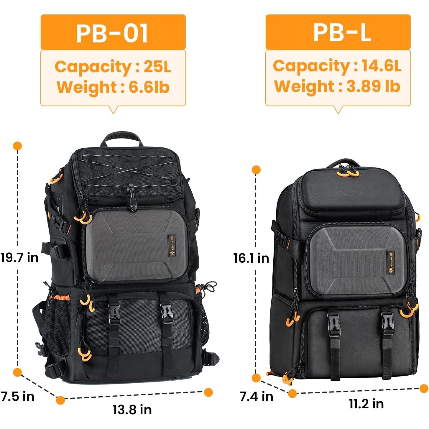 - TARION 27L Large Waterproof Camera Backpack - 2 in 1 Professional Camera Bags for Photographers with 15.6" Laptop Compartment & Raincover & Tripod Holder (PB01)