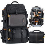 - 【Extra Large with Dual Compartment】Top compartment, can hold 1 camera + 5 lens easily. Lower Compartment Max hold 1 camera + 4 lenses or 6 prime lenses. Accessory shoulder bag can hold 1 camera + 2 lenses.