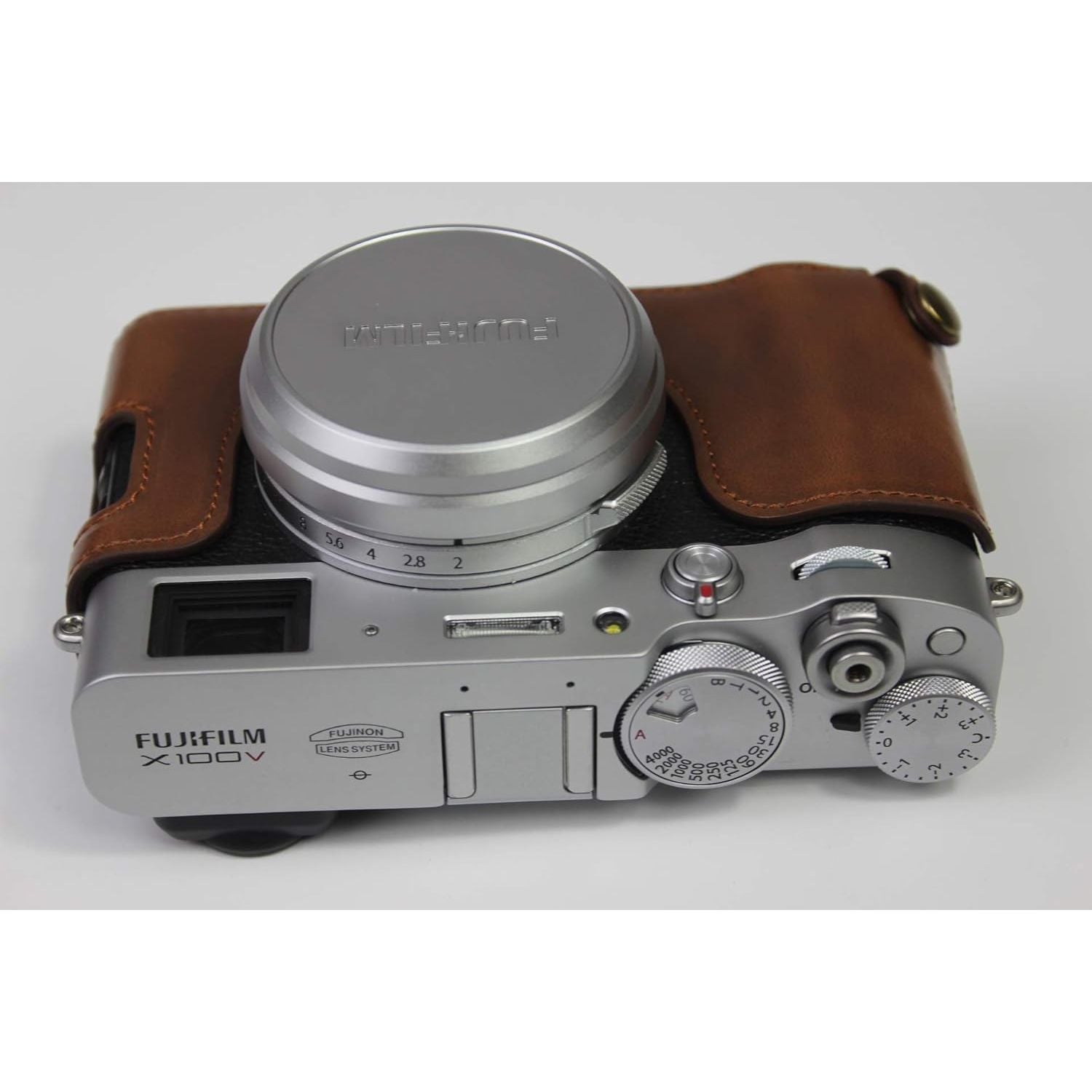 Just fit: Fujifilm Fuji X100V Inside lining use high lever velvet to protect camera body for scratch and coloration. There is a opening on the bottom for battery, You don't need to take off the half case when you change battery. Under base screw is made by copper and it can easy take off by coin. You don't need to take off the half case when you use tripod. Package List: 1 x Half Leather Case 1 x Hand Strap